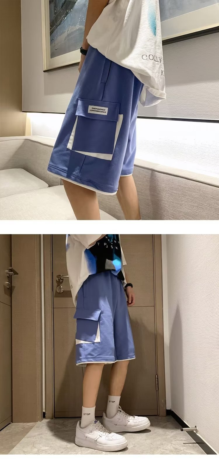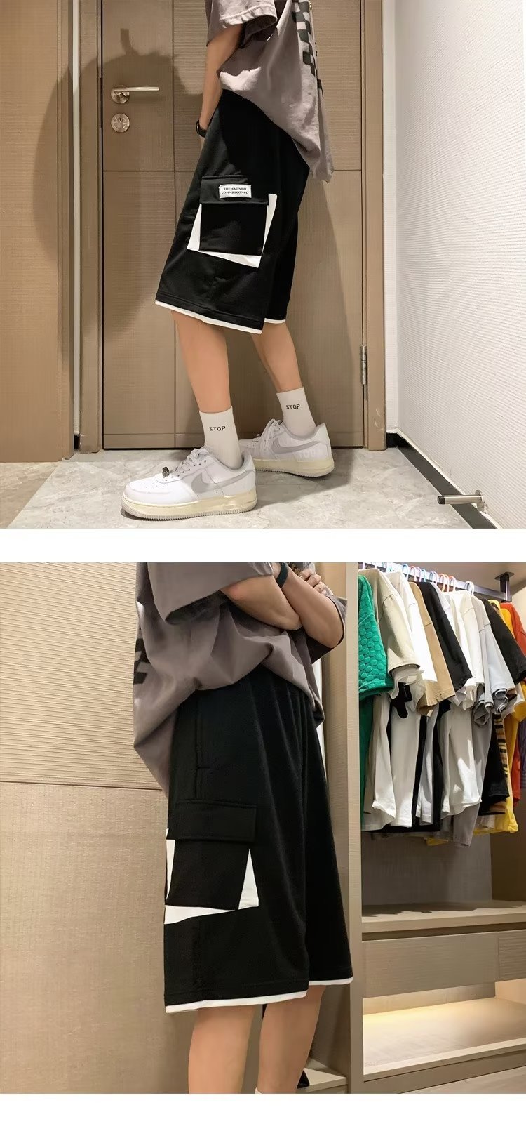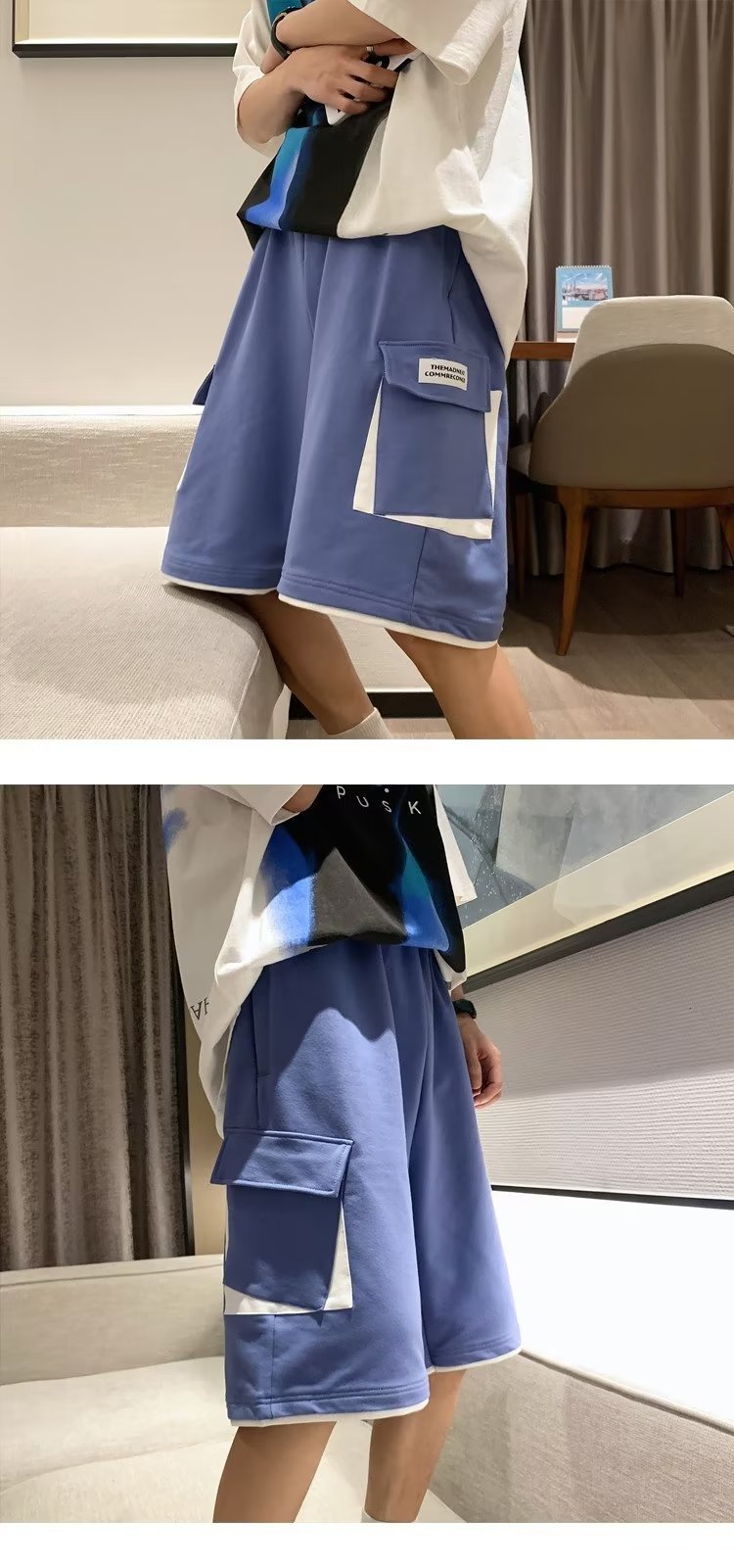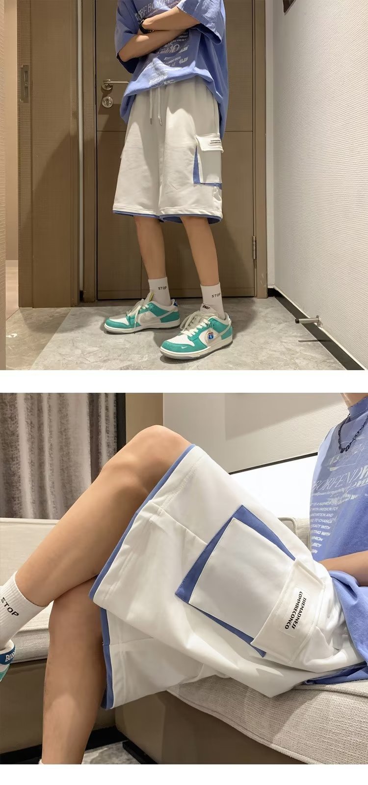 韓国ファッション コントラストカラー カジュアル ショットパンツ