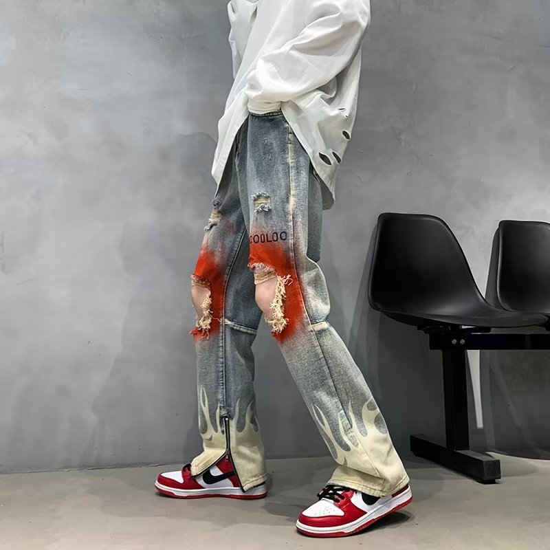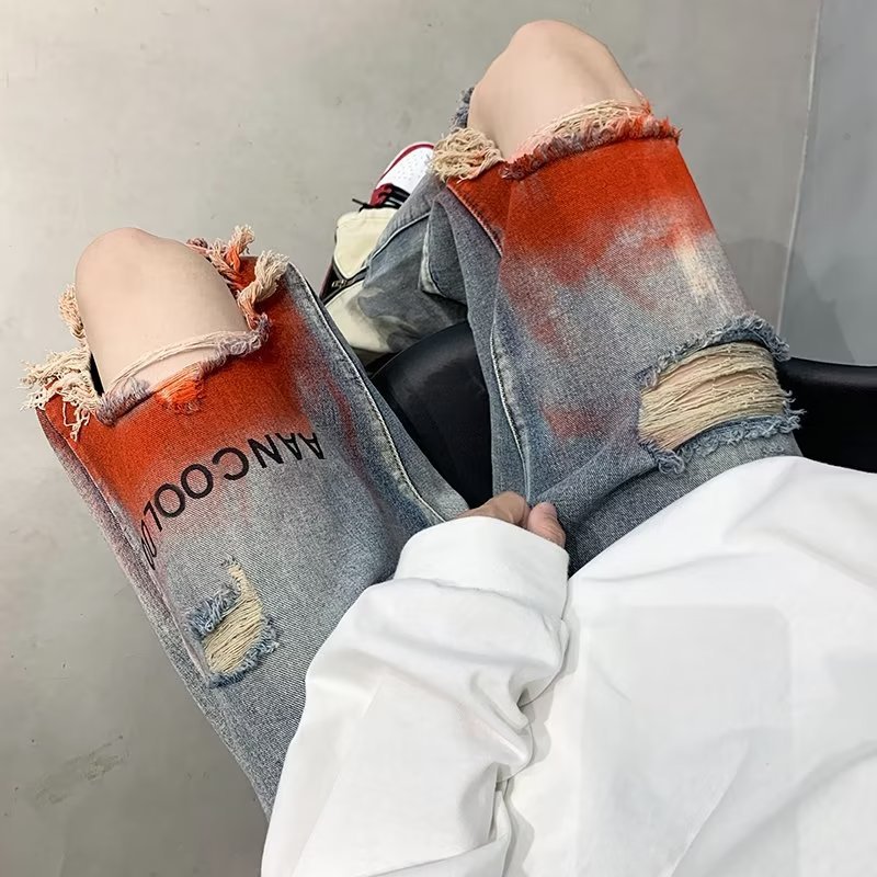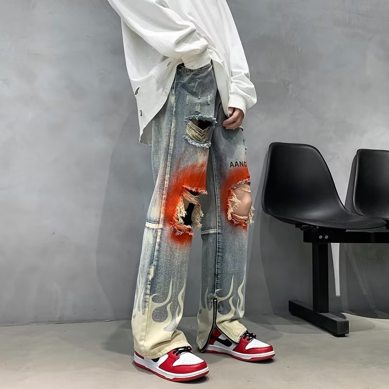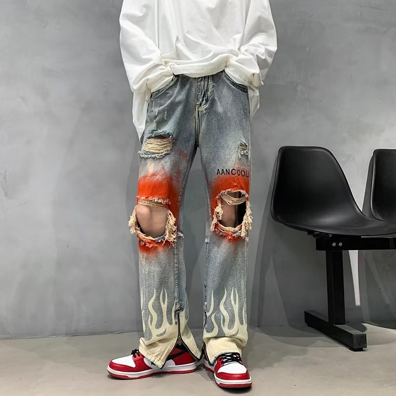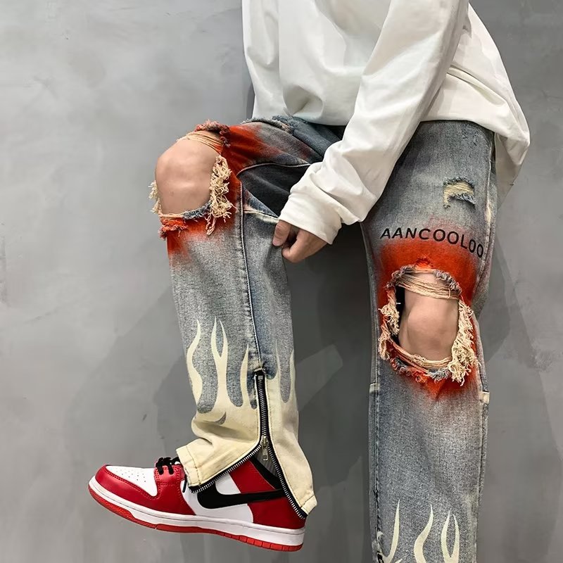 超カッコイイ ストリートスタイル ヒップホップ風 ダメージデニムパンツ