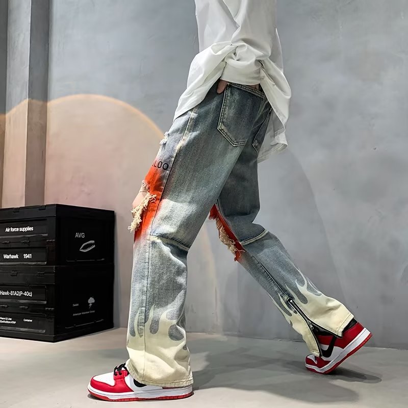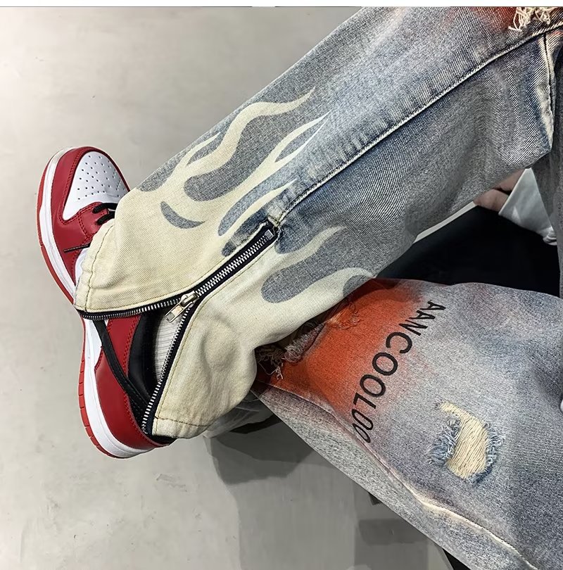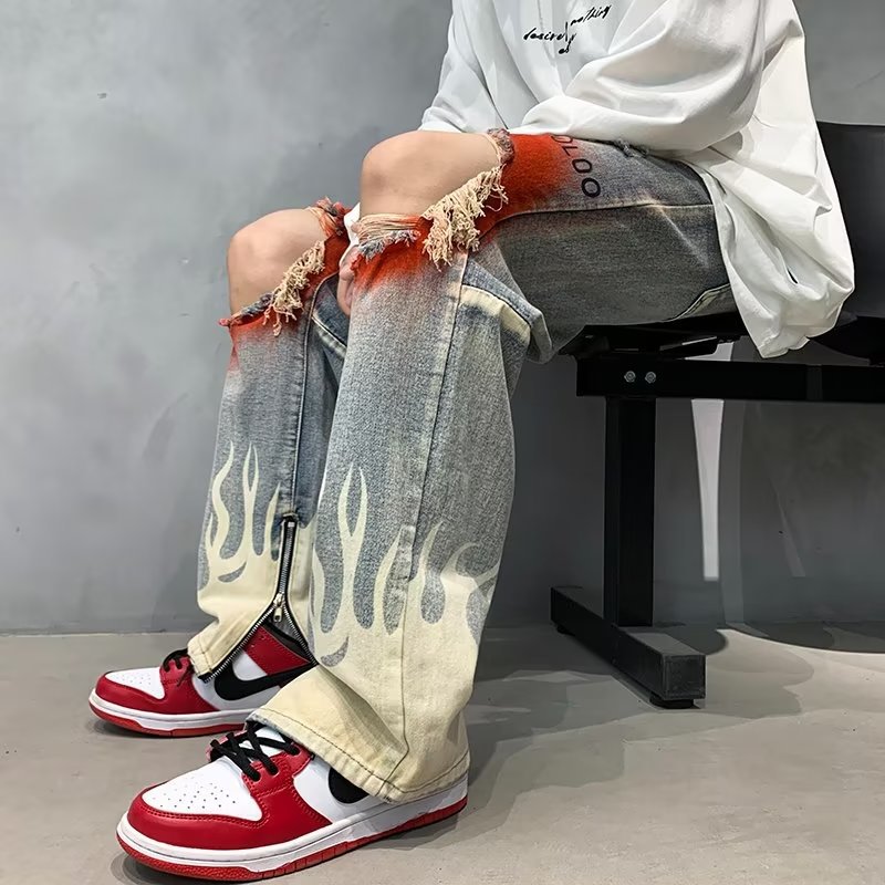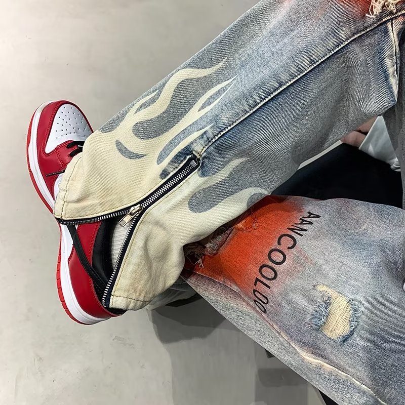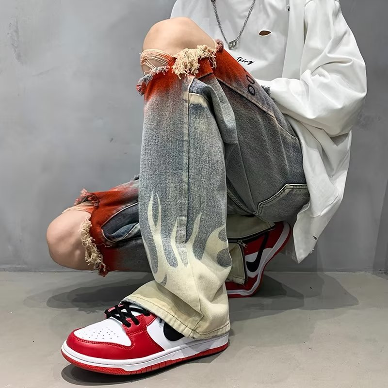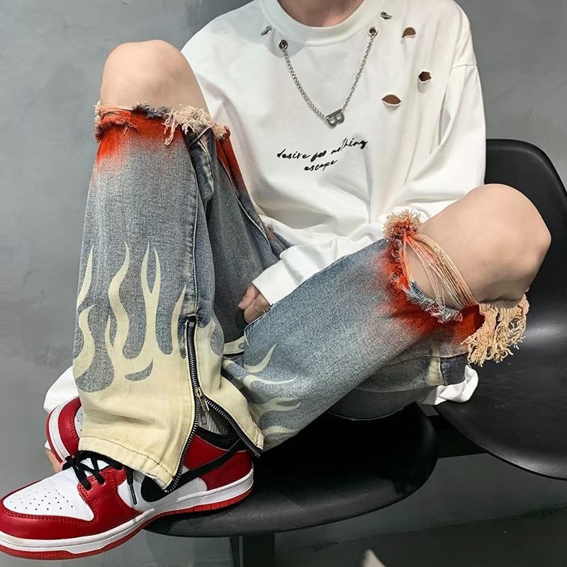 超カッコイイ ストリートスタイル ヒップホップ風 ダメージデニムパンツ