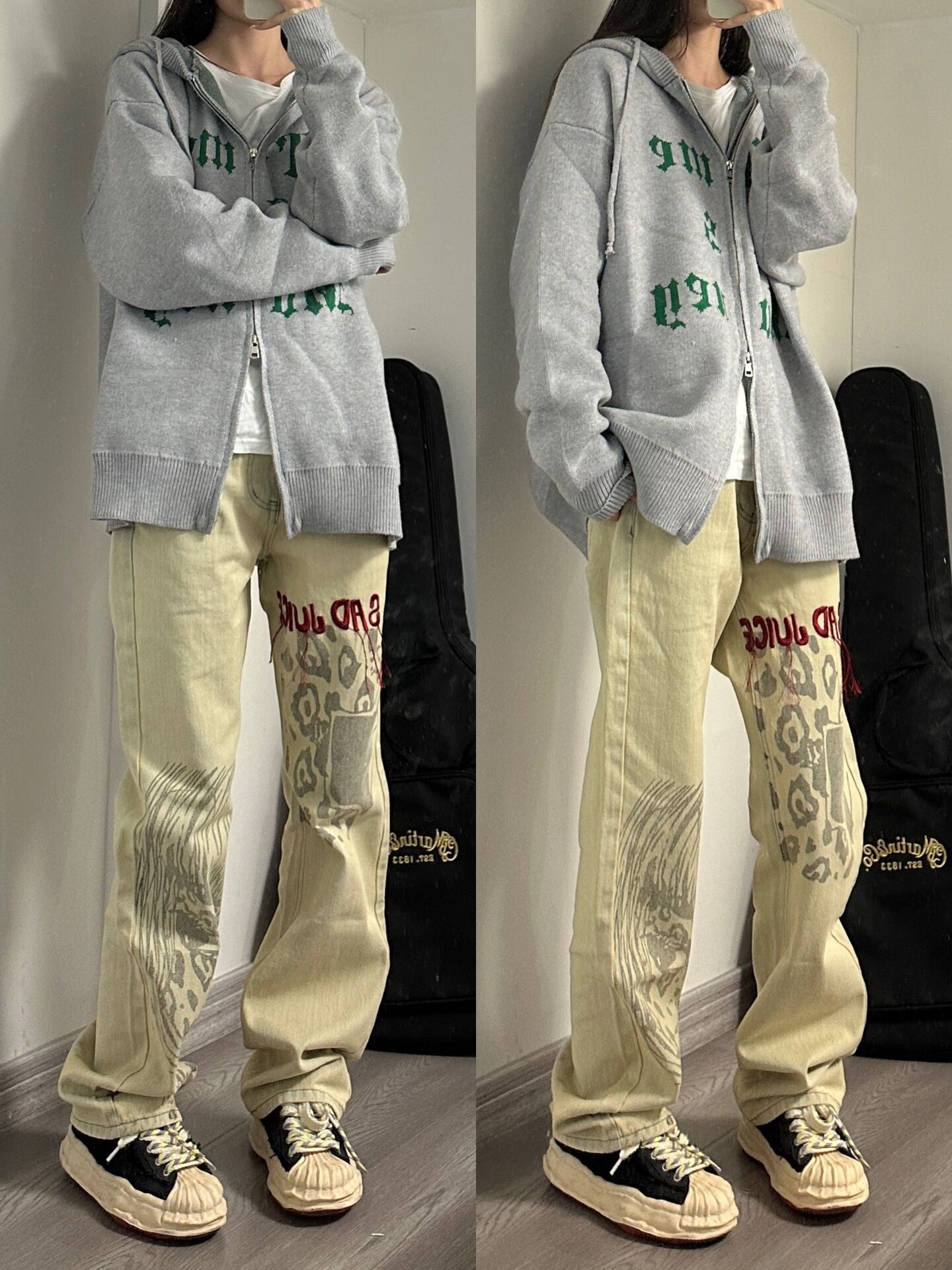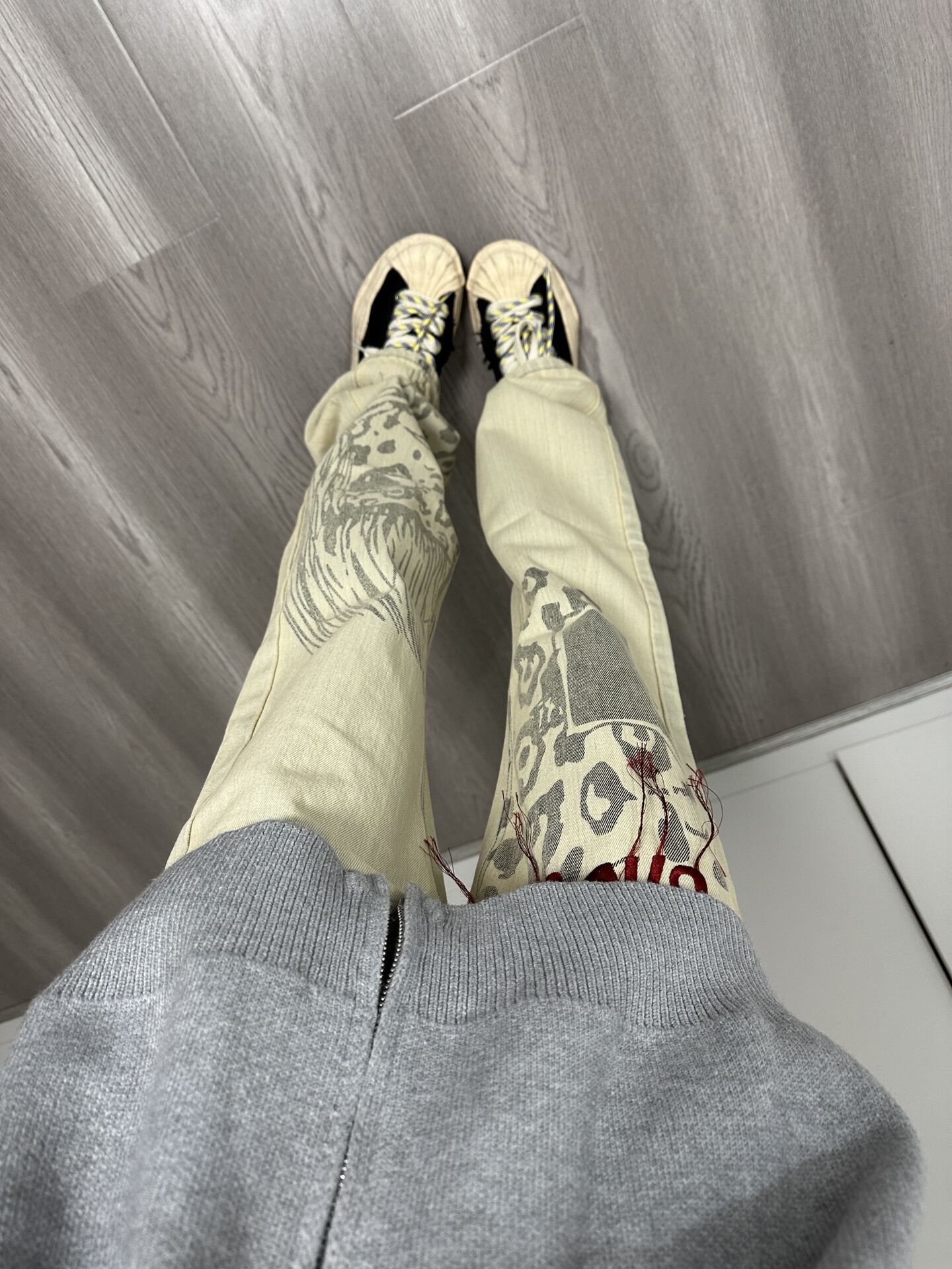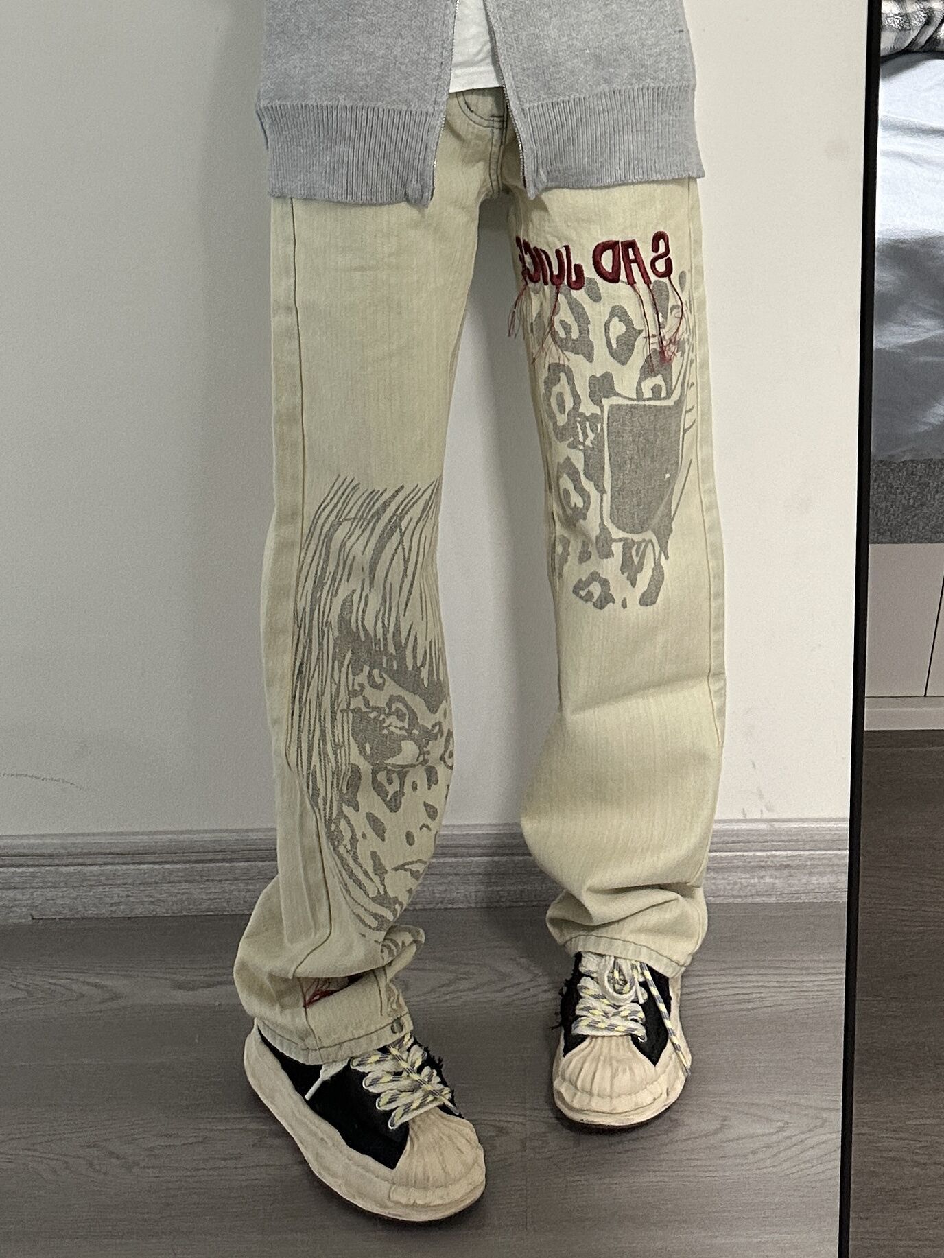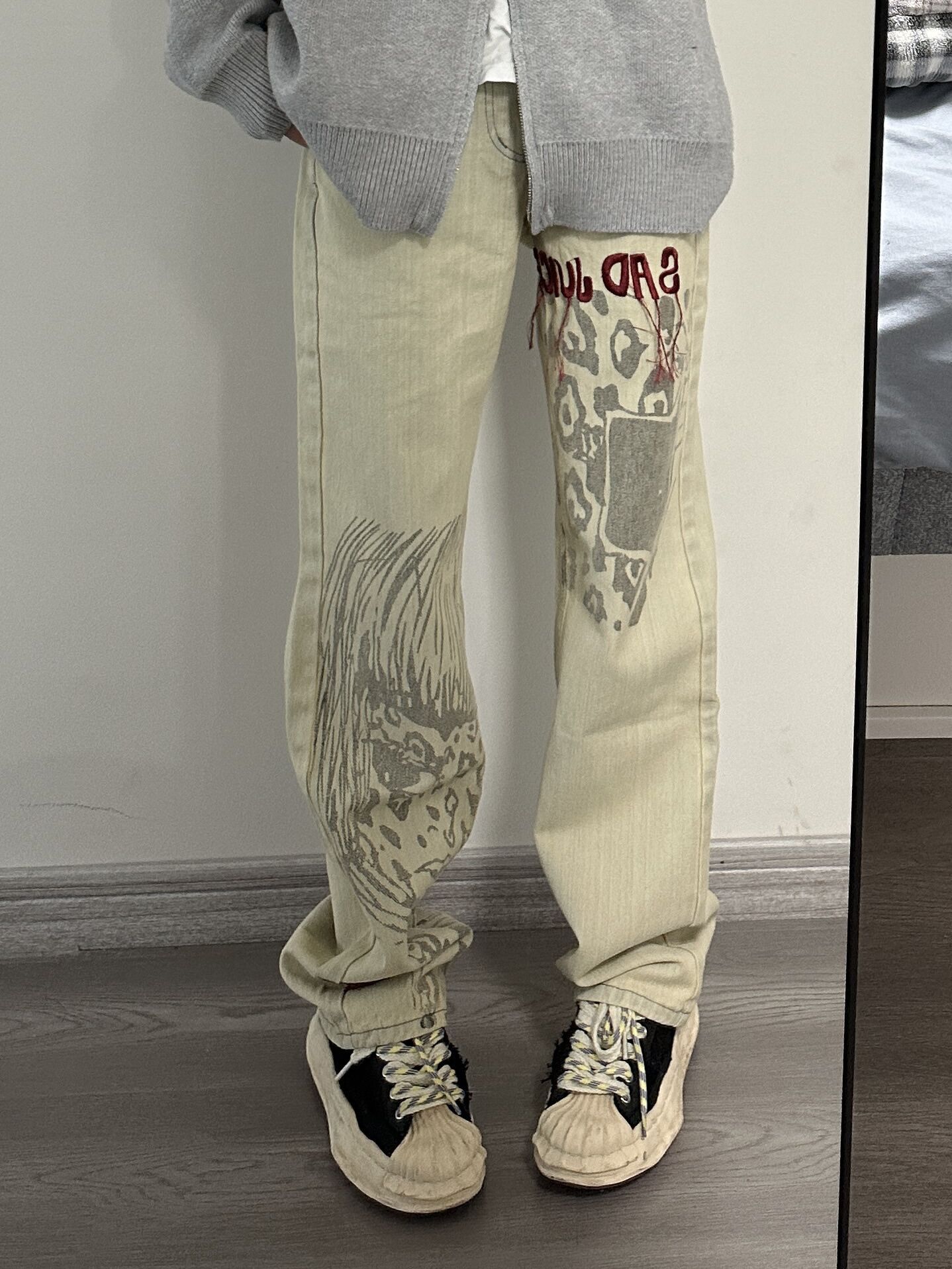 ハイファッションセンス 落書き風 カジュアル ジーンズ