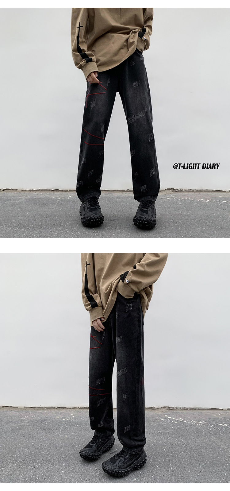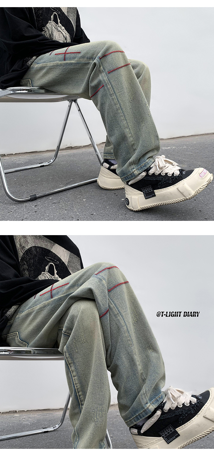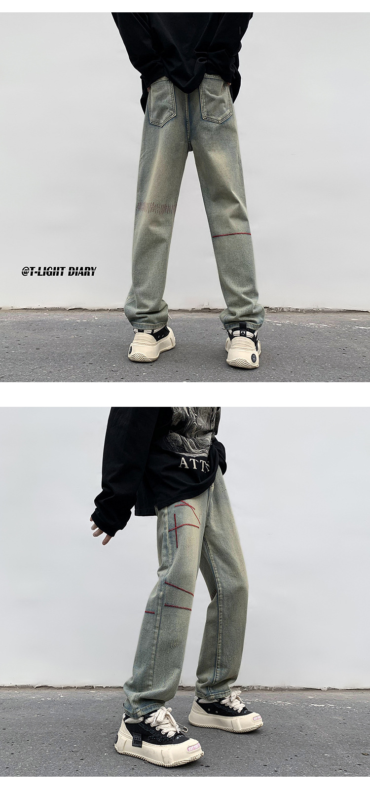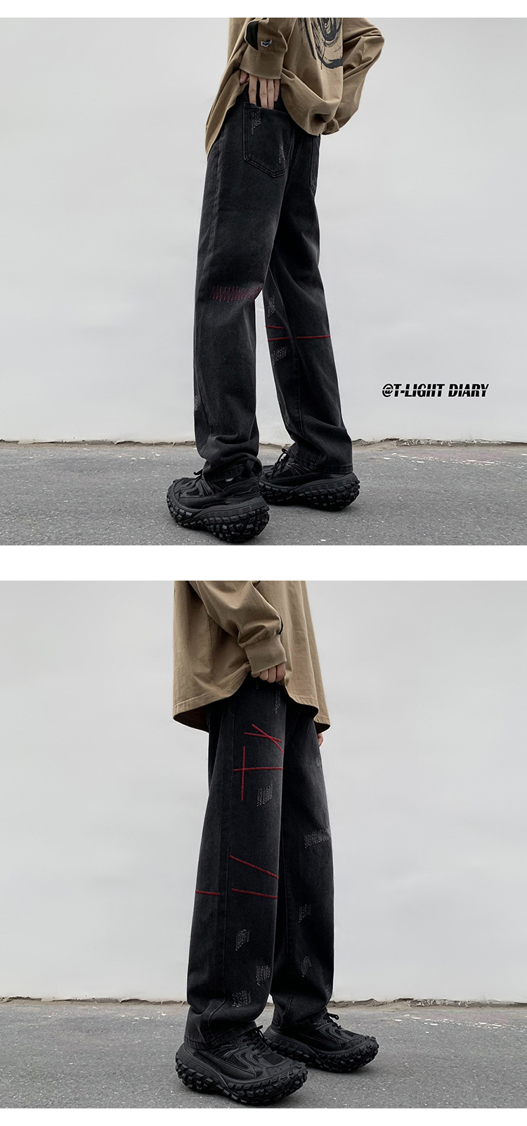 赤い糸の刺繍 ハイファッションセンス ヴィンテージスタイル ジーンズ