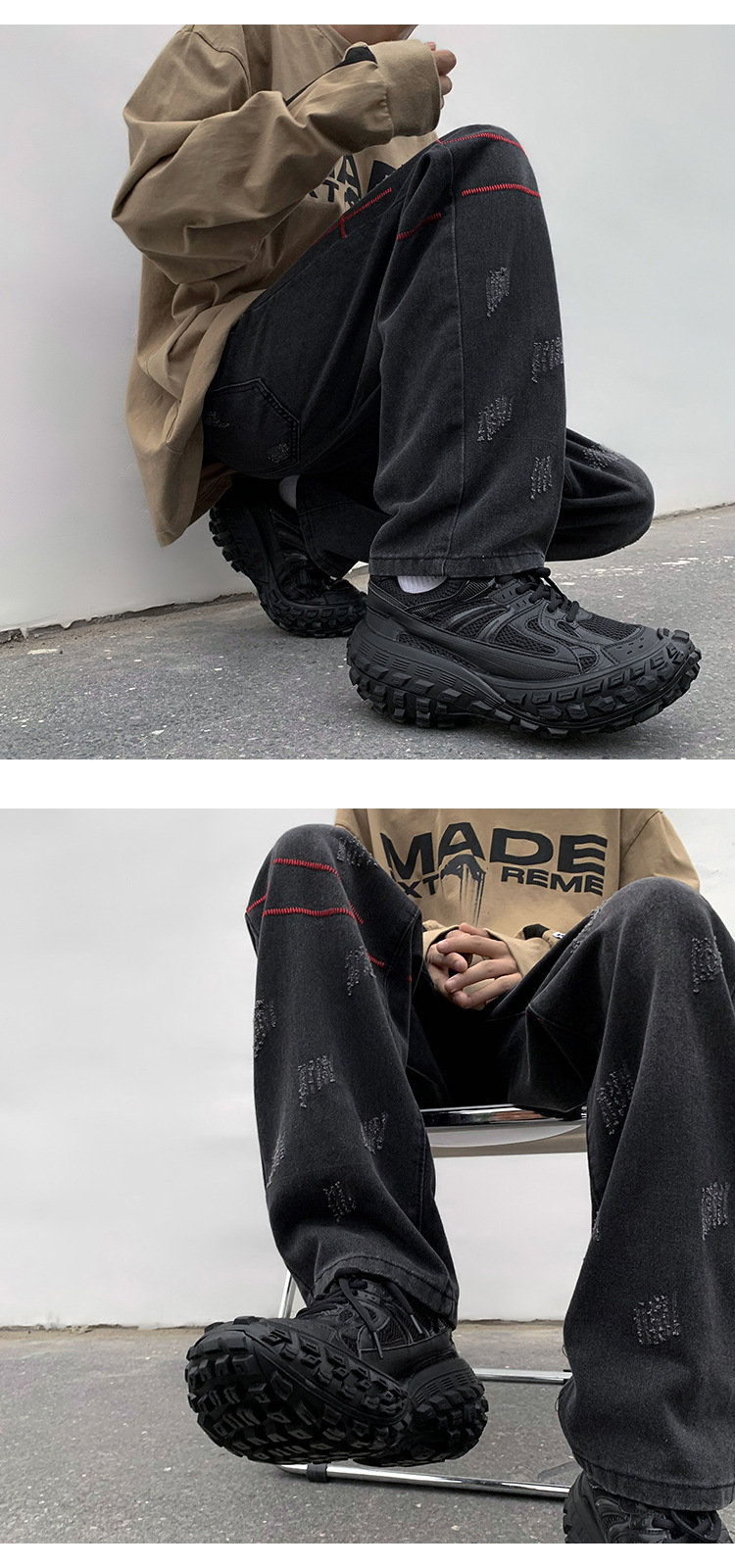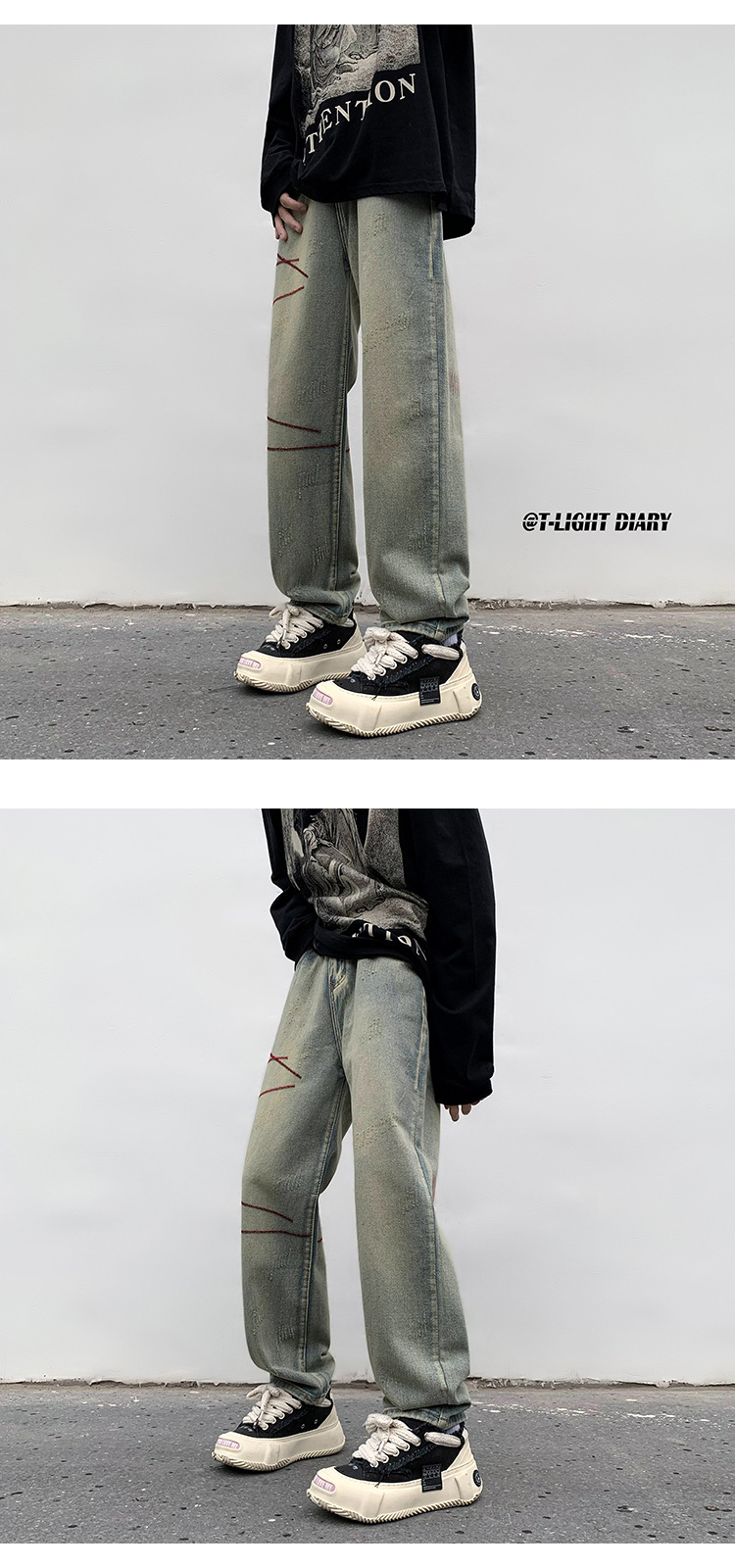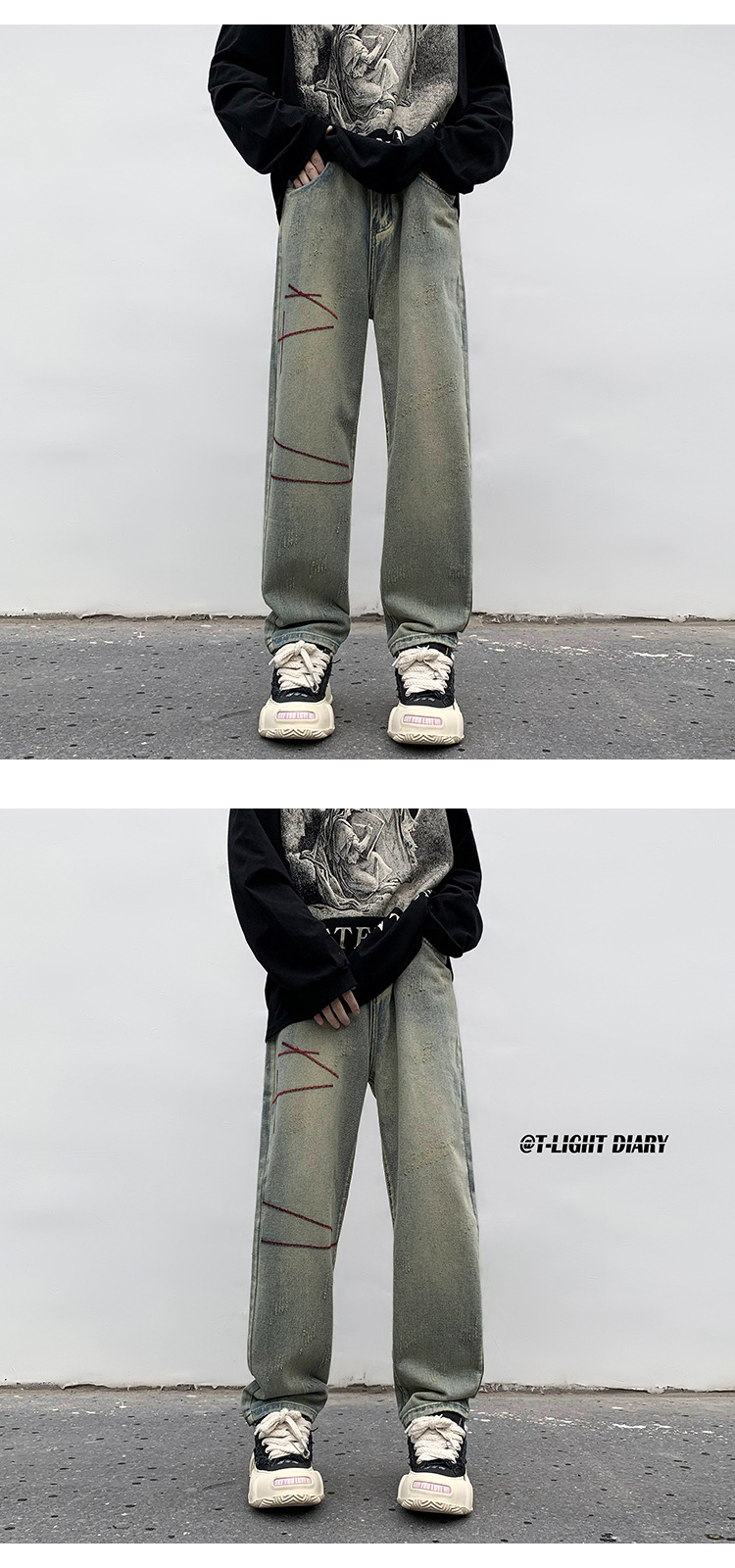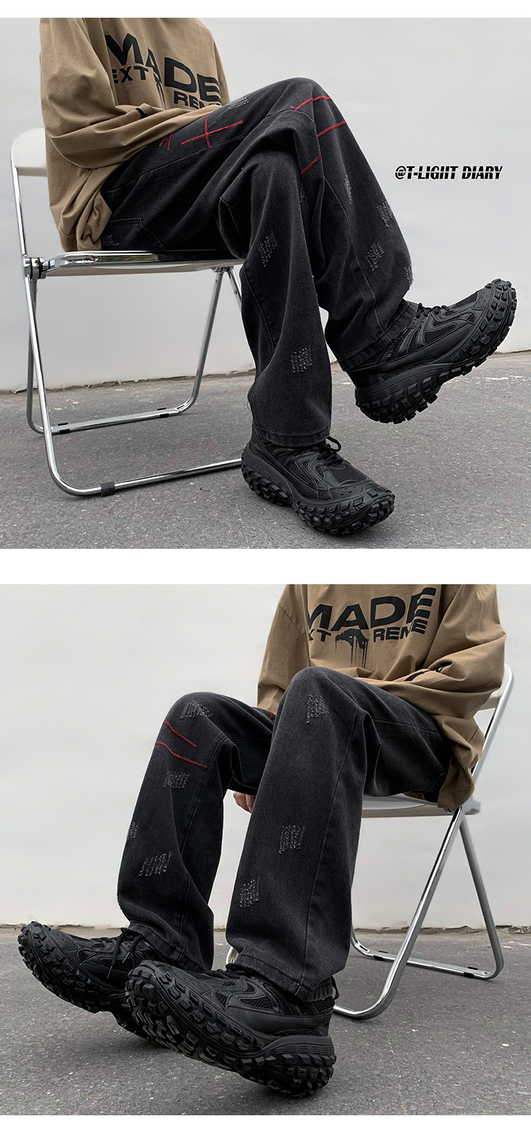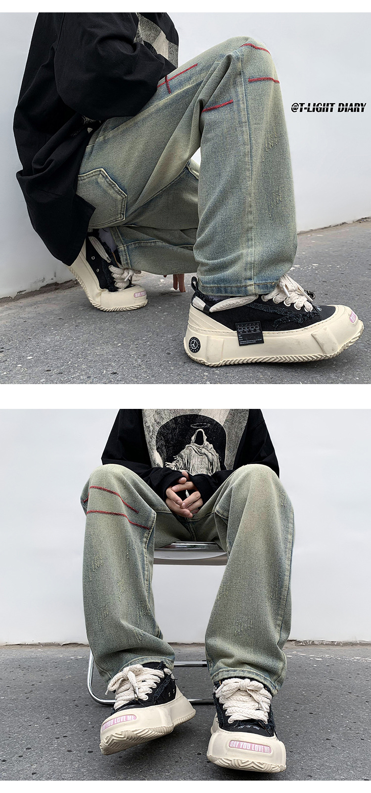 赤い糸の刺繍 ハイファッションセンス ヴィンテージスタイル ジーンズ
