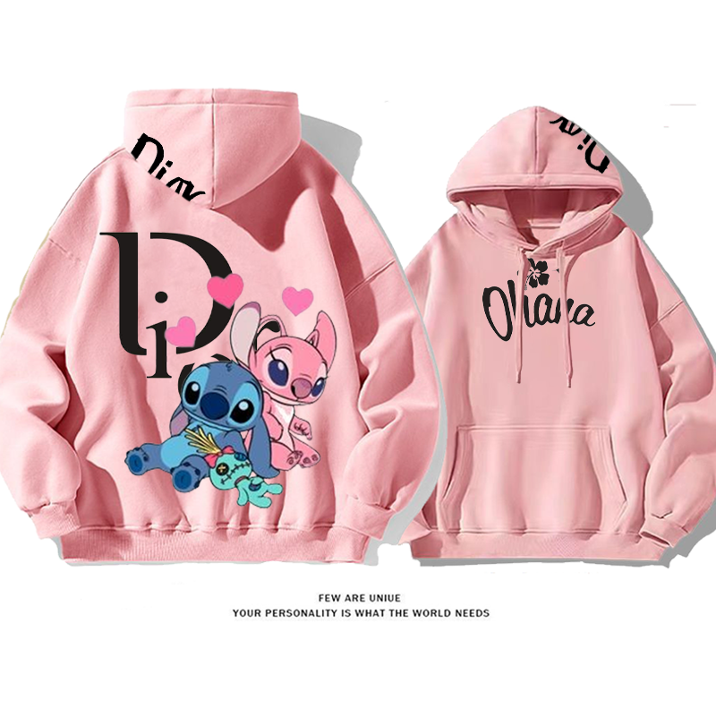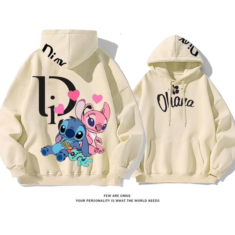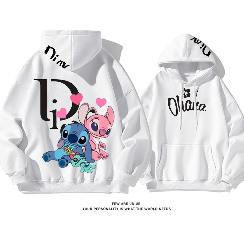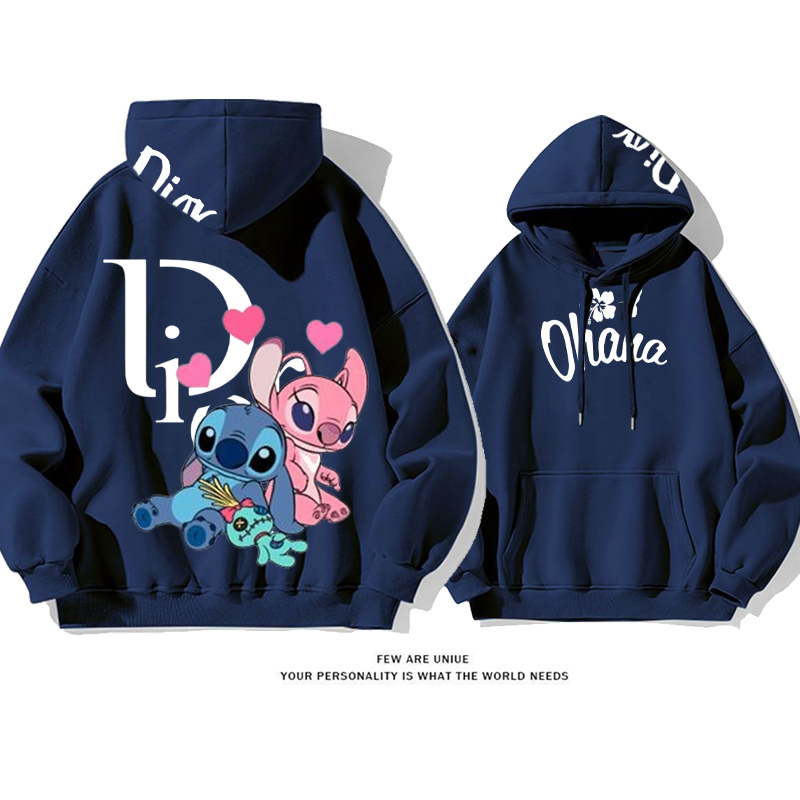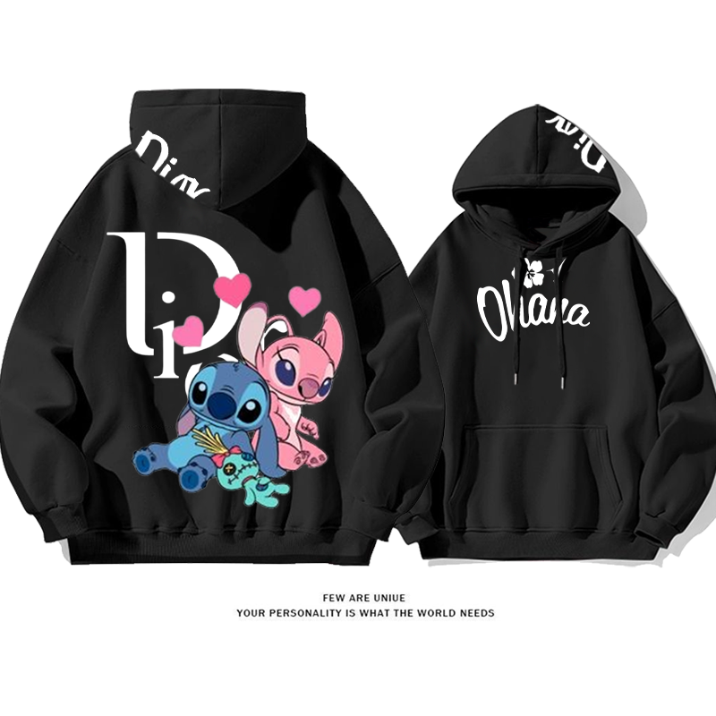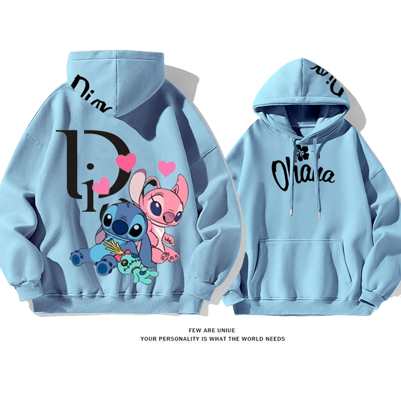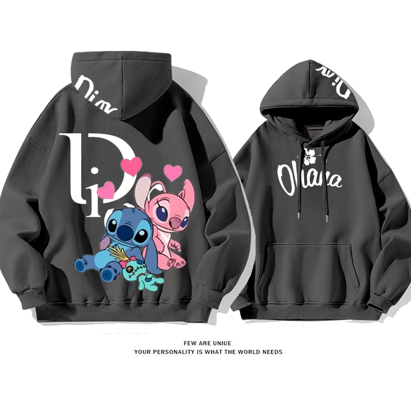 人気アニメの犬のカップル プリント柄フード付きパーカー