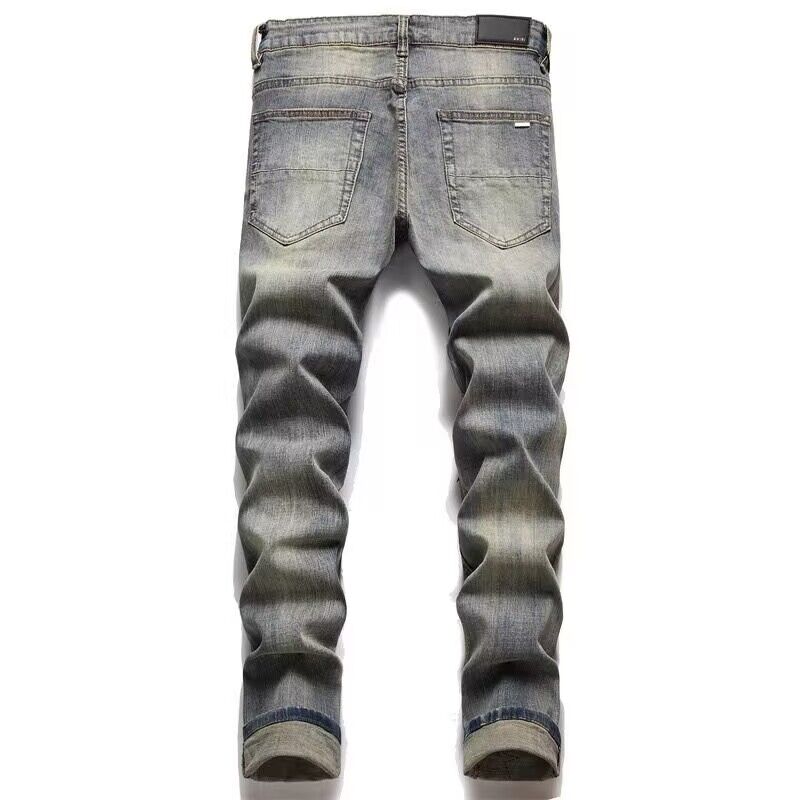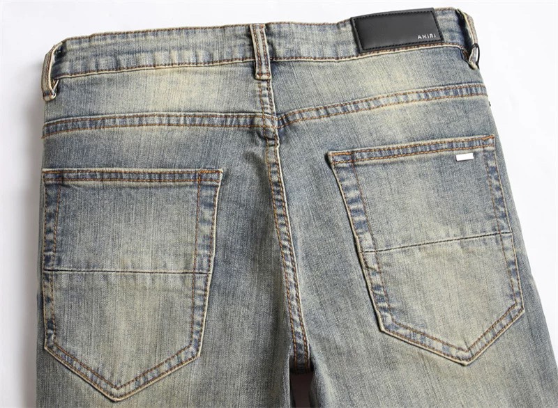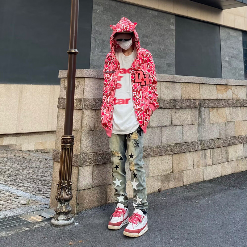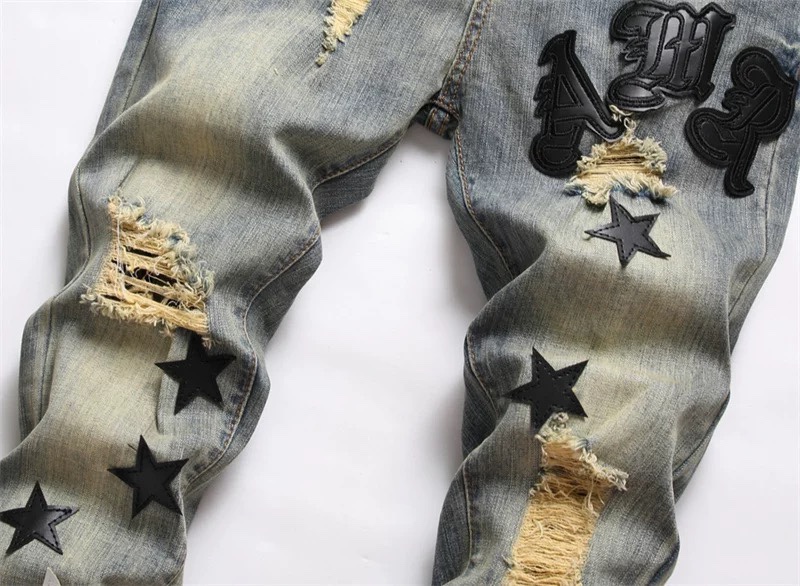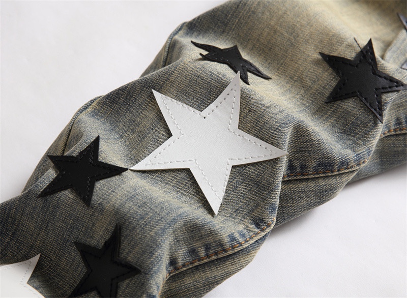 アメリカンスタイル トレンドブランド 五芒星 ダメージデニムパンツ