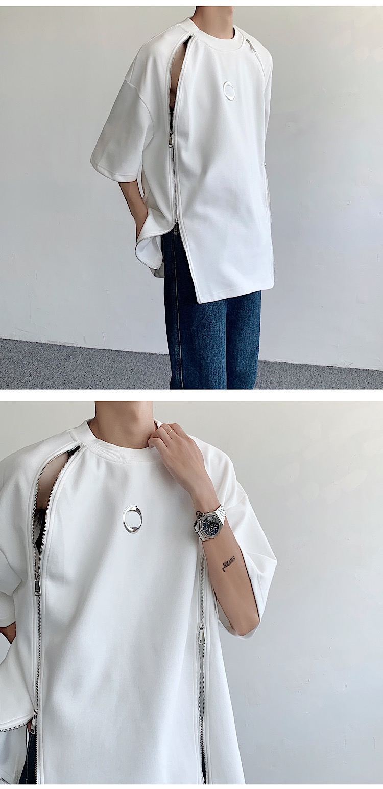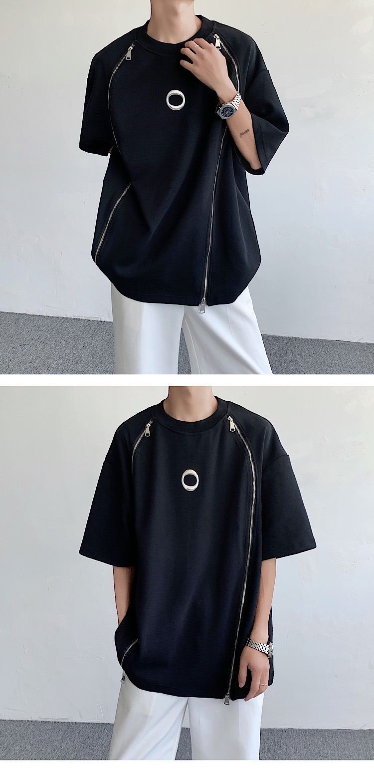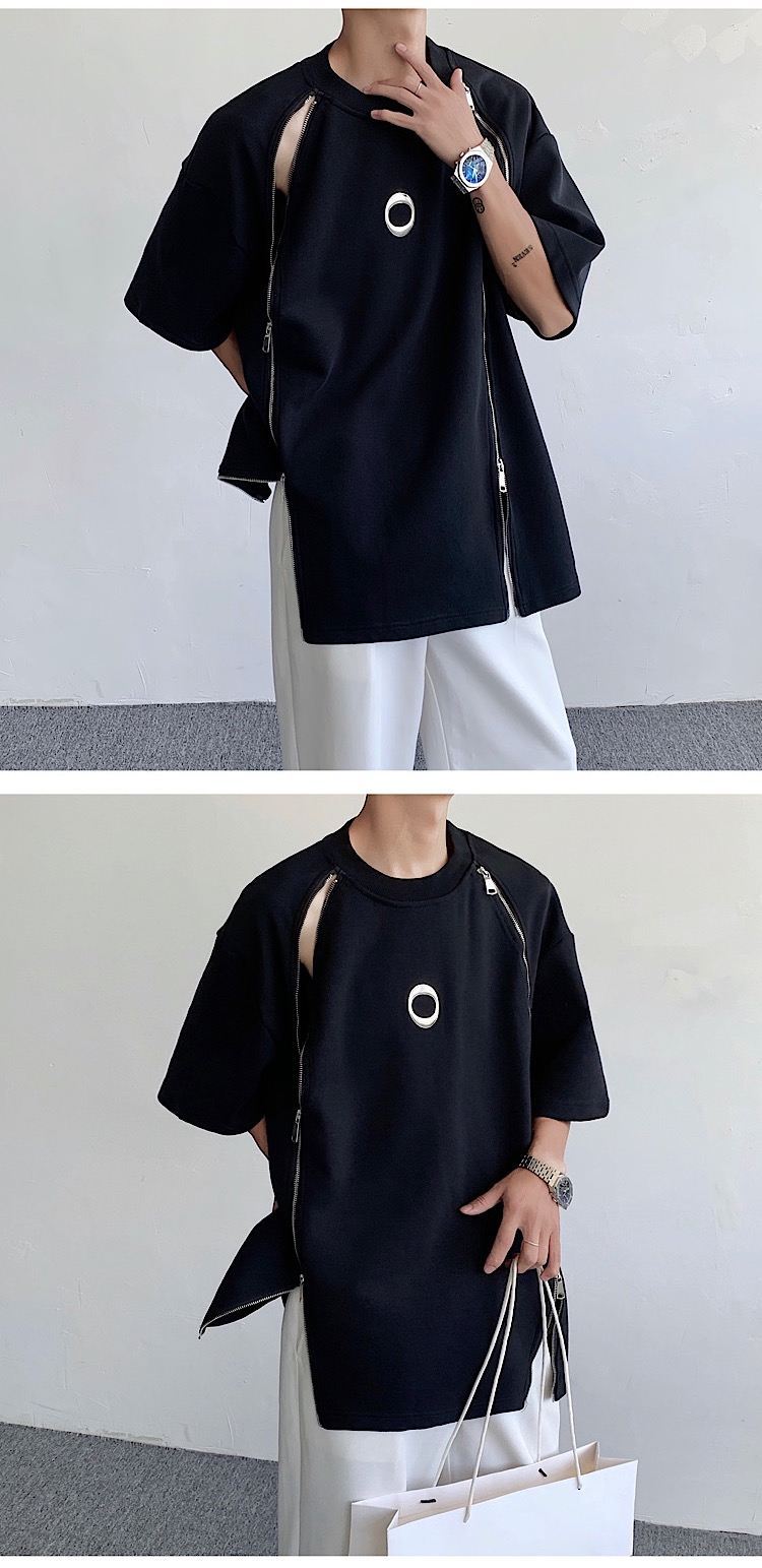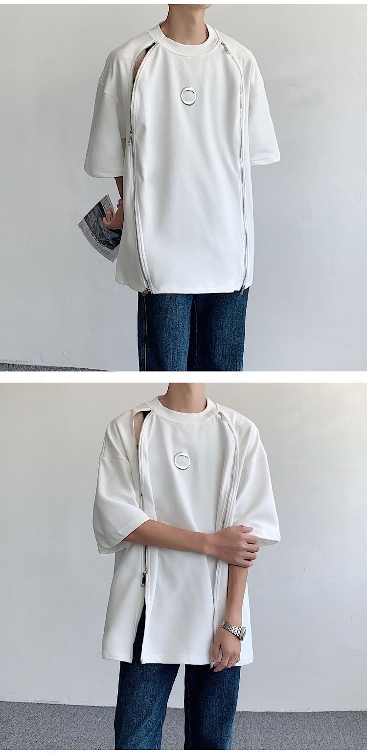 韓国ハイファッションセンス アドバンスド ダブルジッパー 半袖シャツ