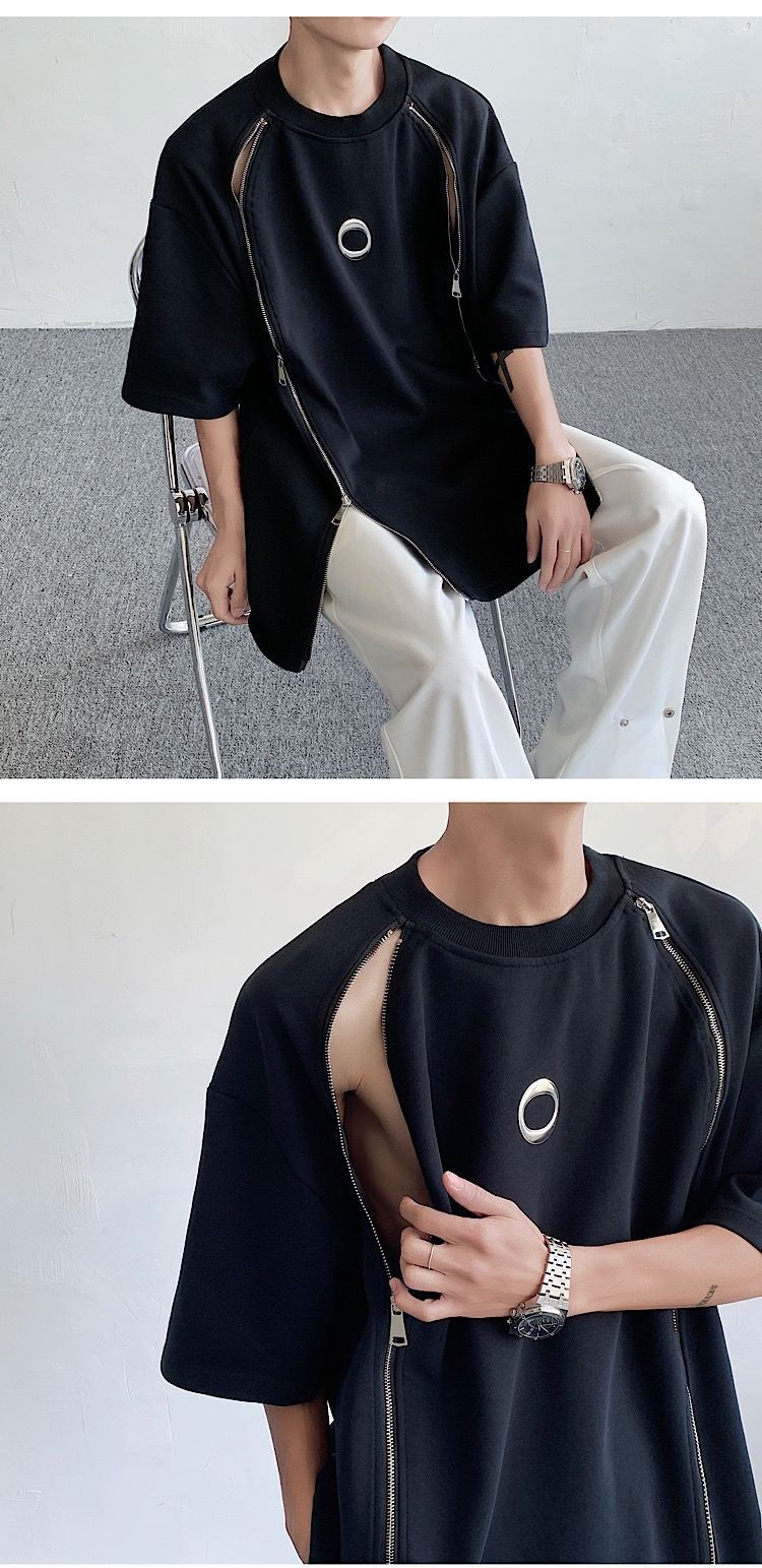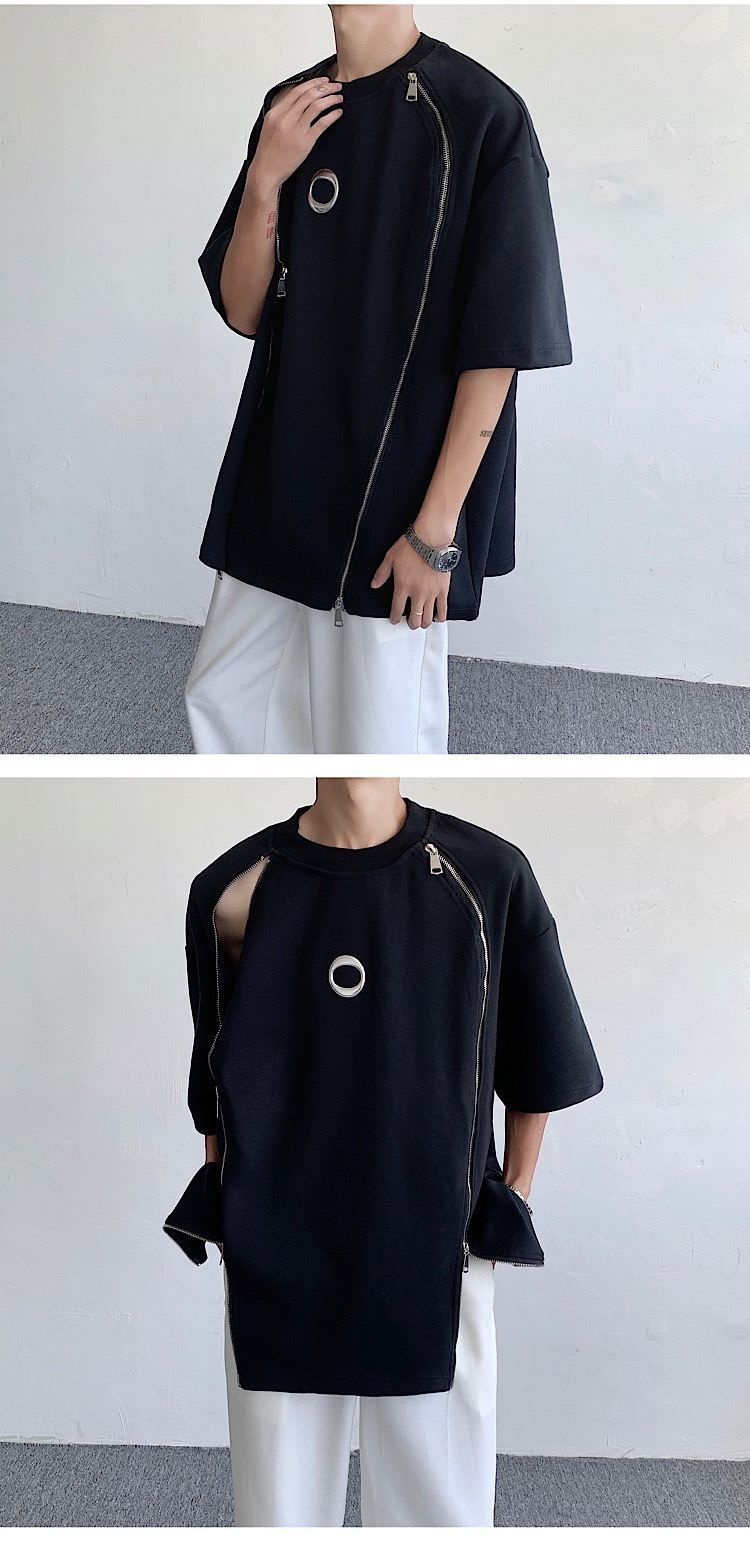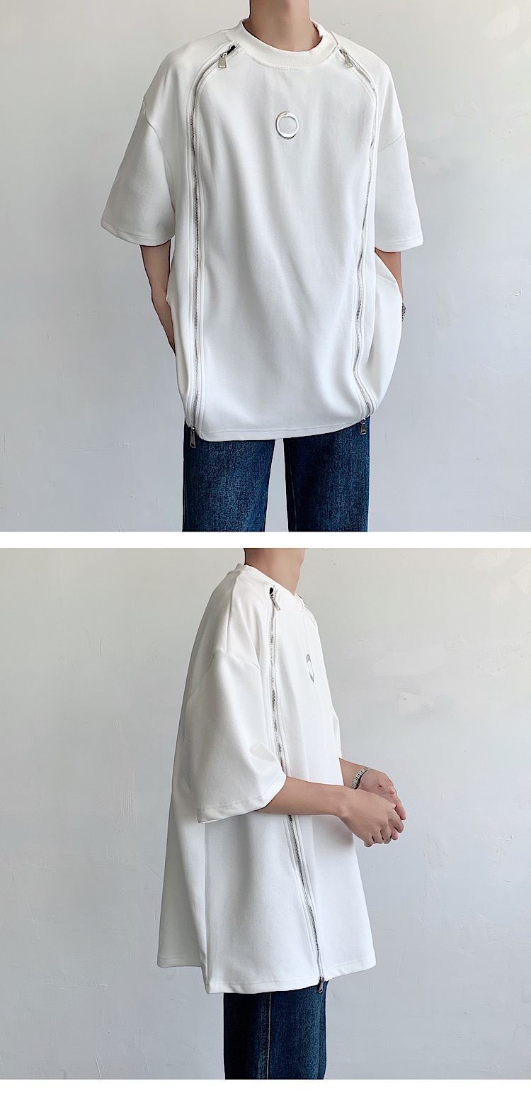 韓国ハイファッションセンス アドバンスド ダブルジッパー 半袖シャツ