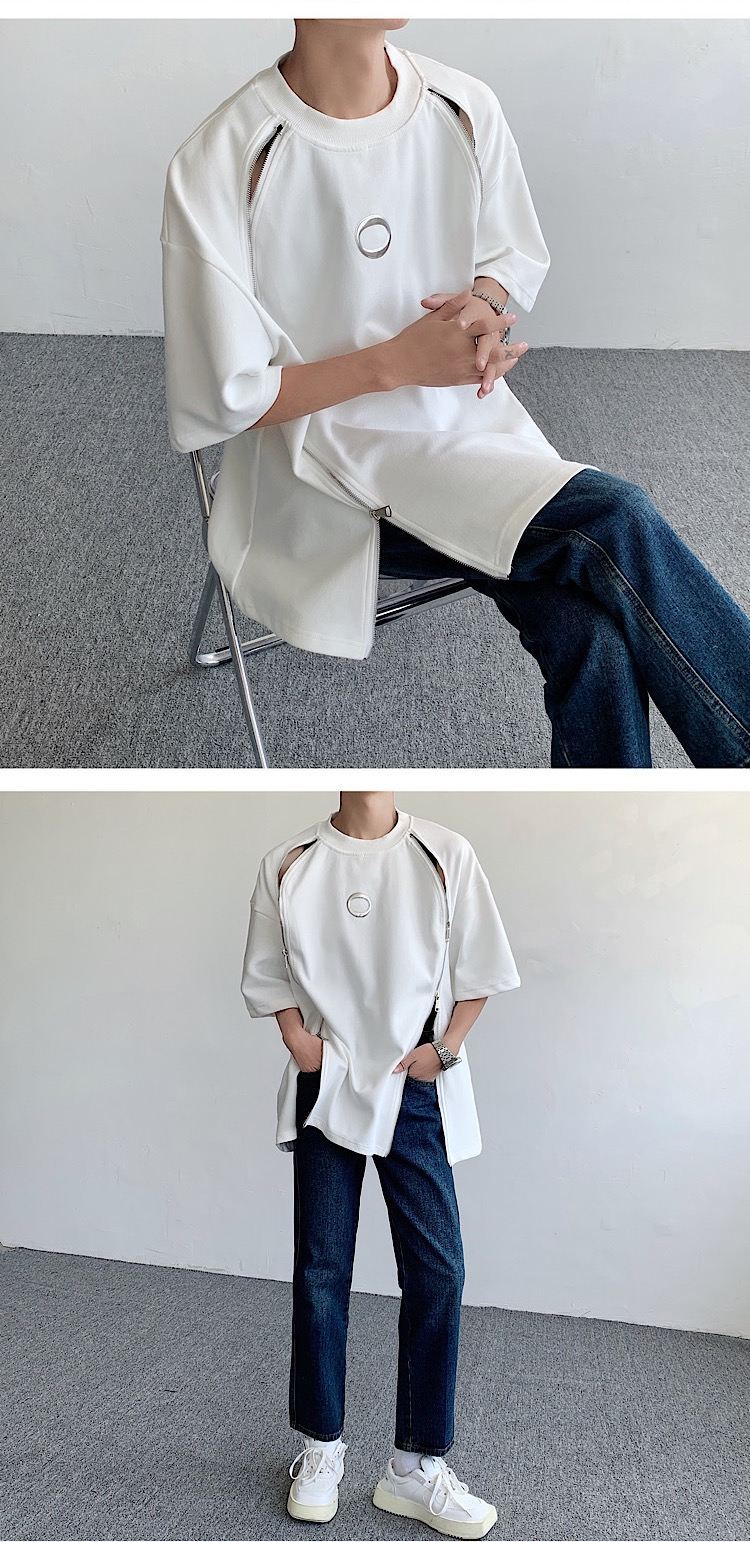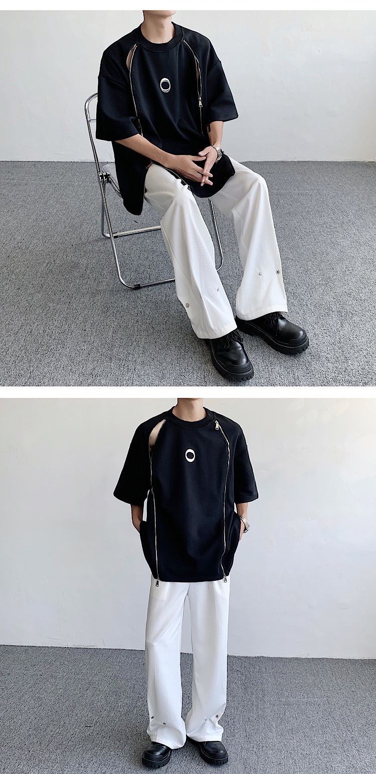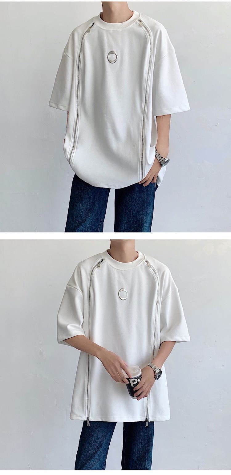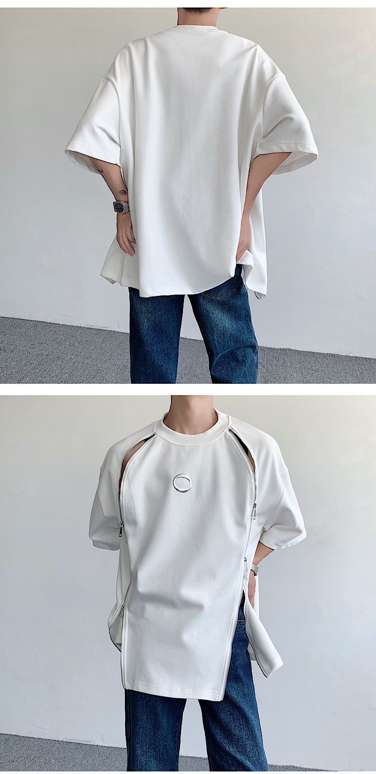韓国ハイファッションセンス アドバンスド ダブルジッパー 半袖シャツ