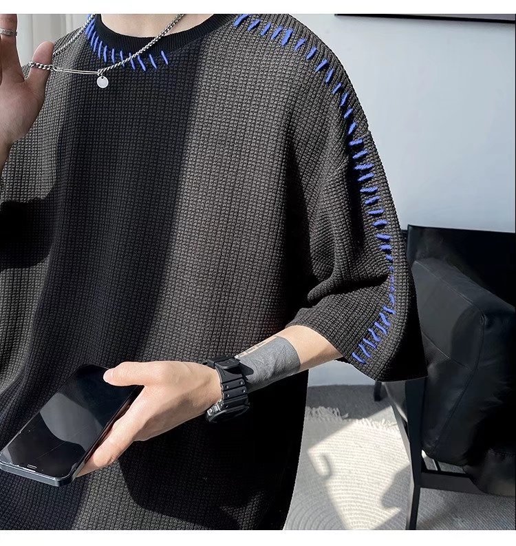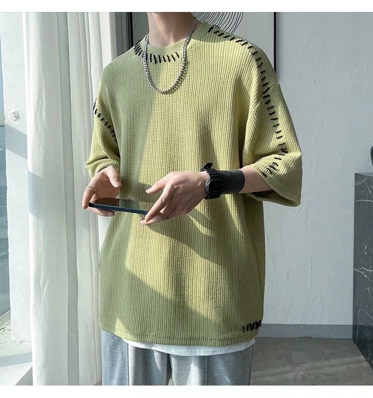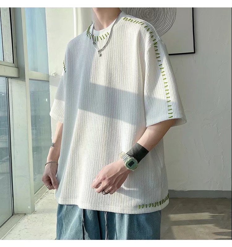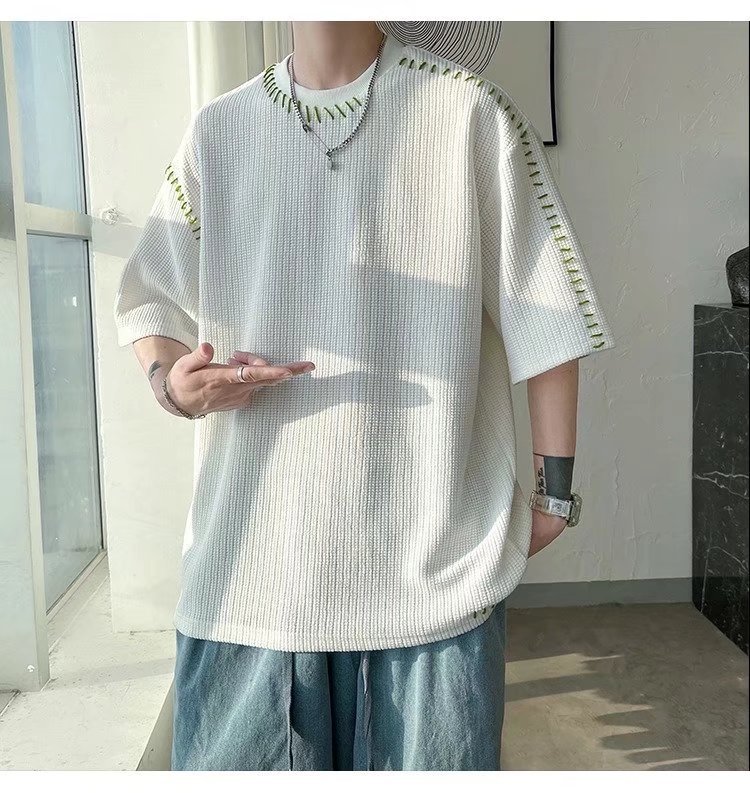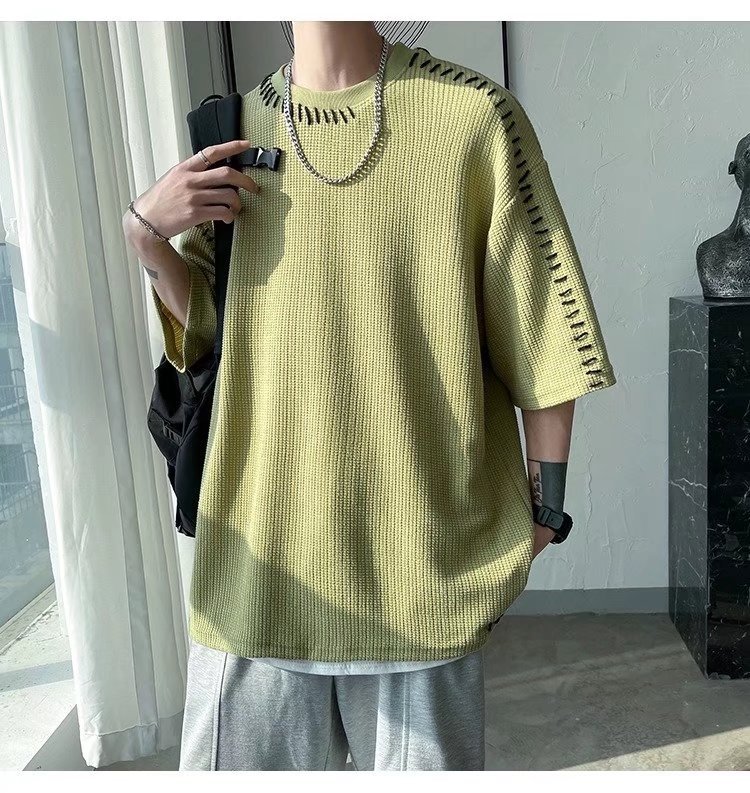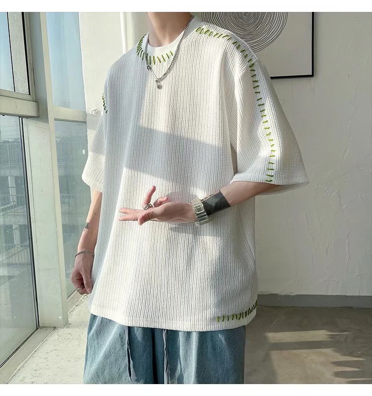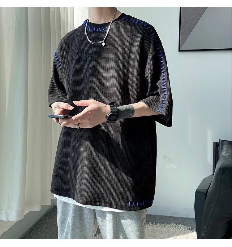 INS 個性的 縫い目のデザイン カジュアル ワッフル 半袖シャツ