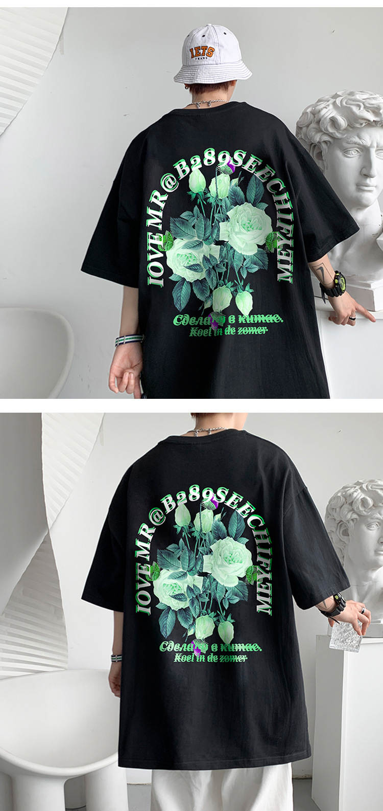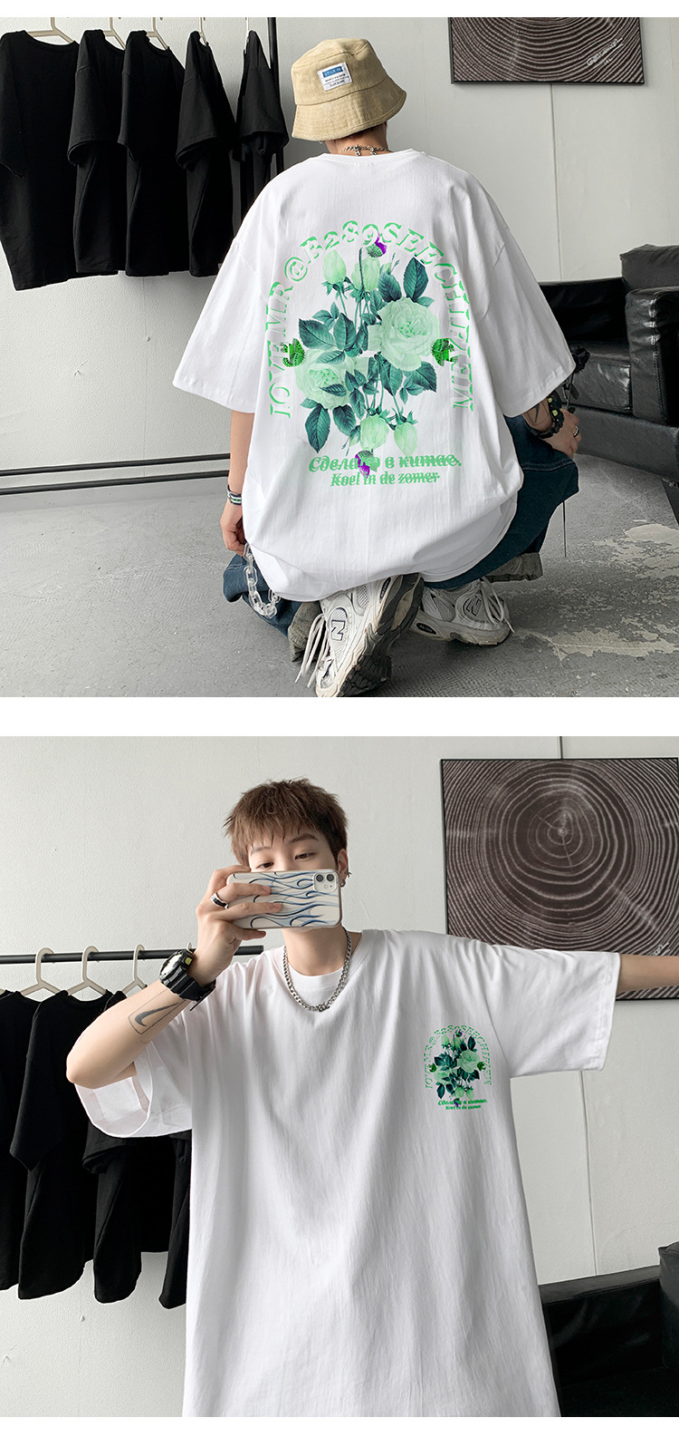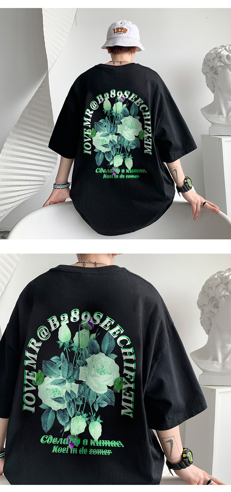 純綿 ハイストリートスタイル 薔薇 半袖シャツ