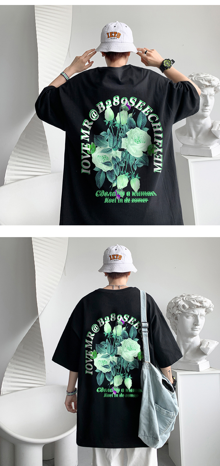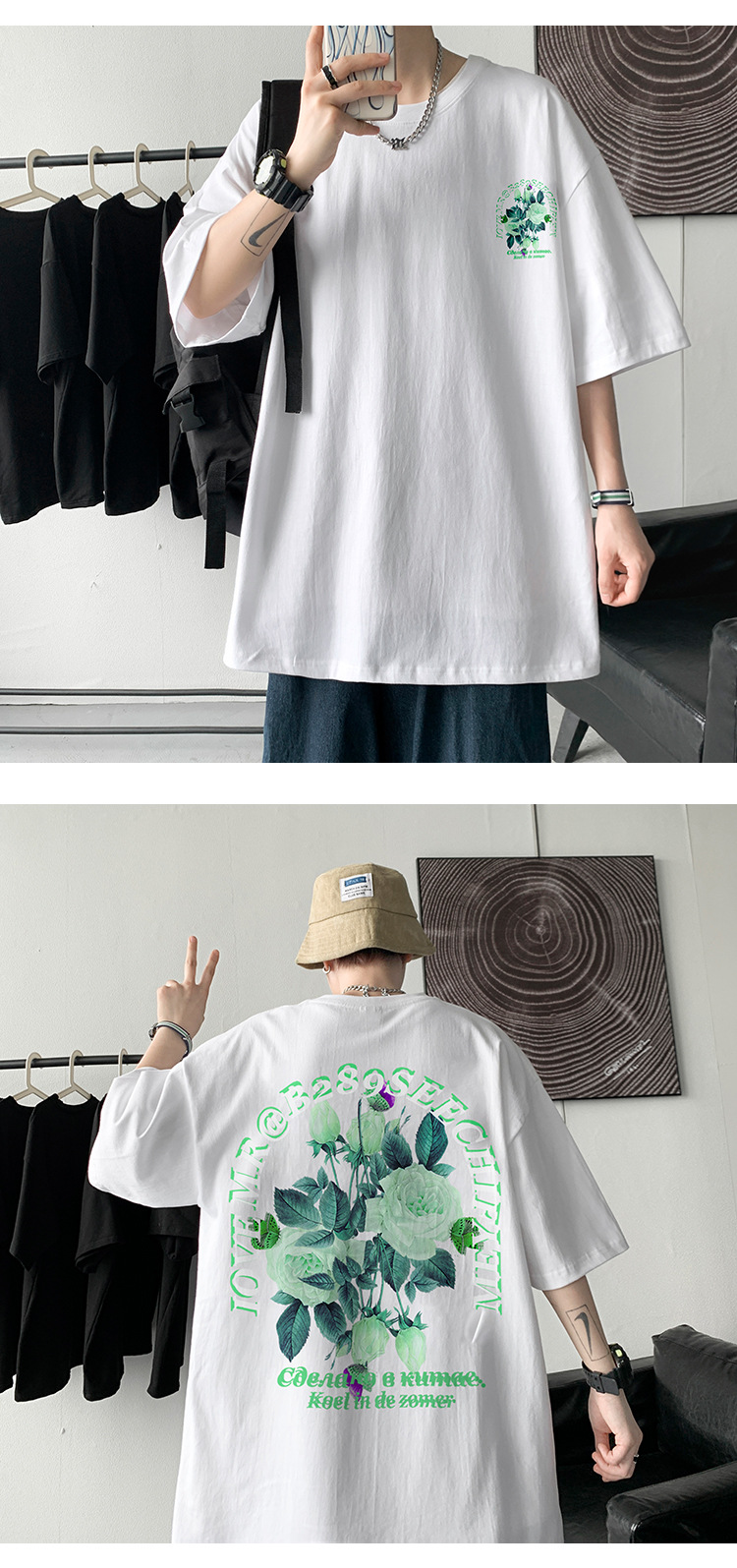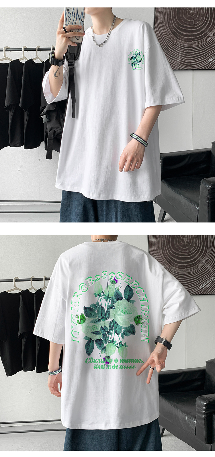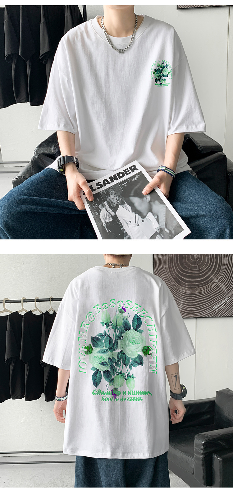 純綿 ハイストリートスタイル 薔薇 半袖シャツ