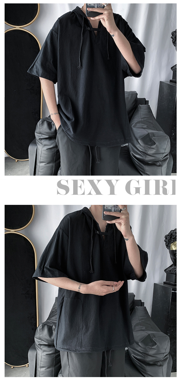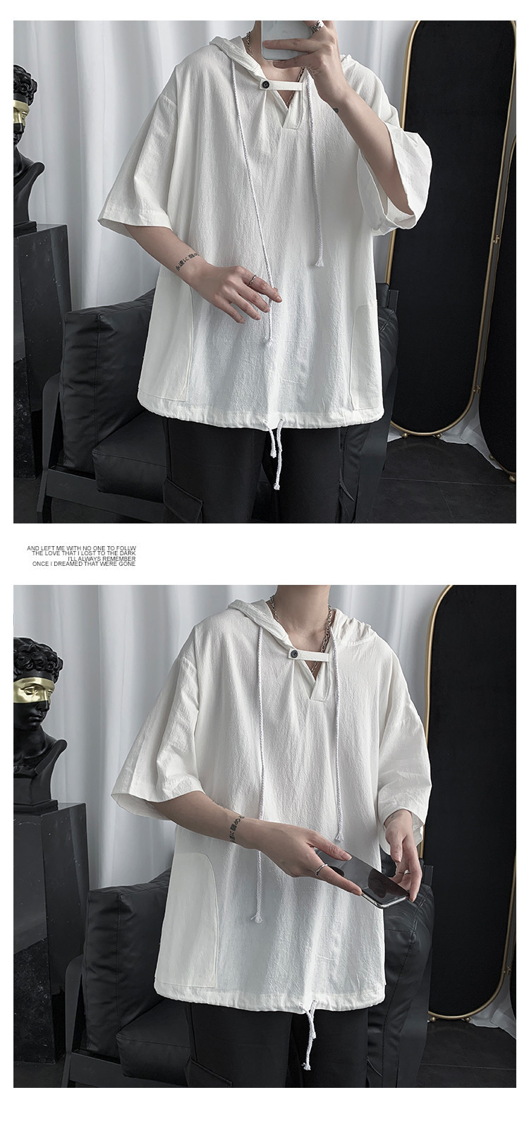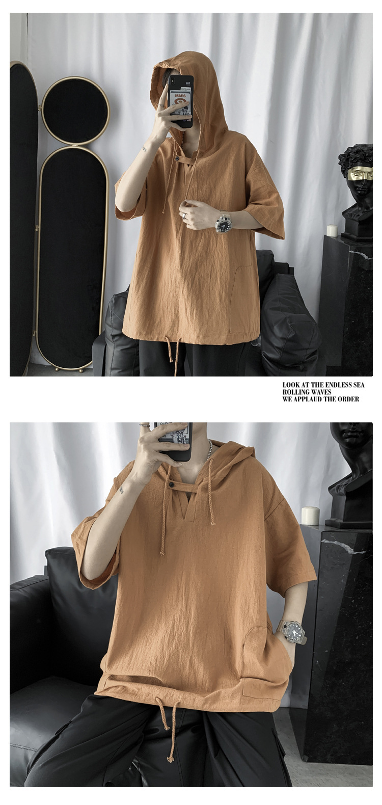 ハイストリートスタイル ユニークなデザイン キャップ付き半袖シャツ