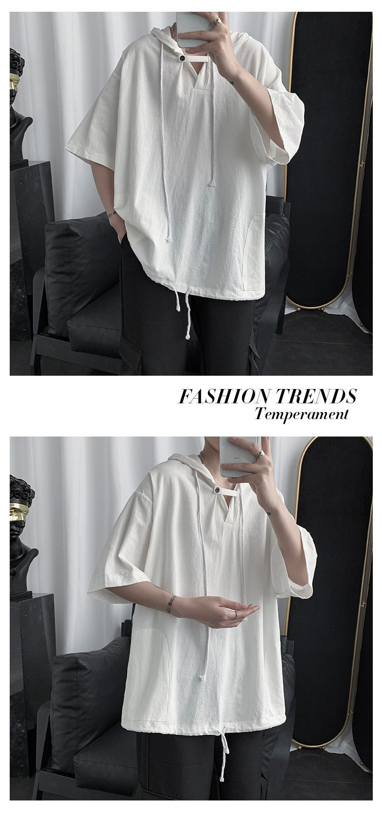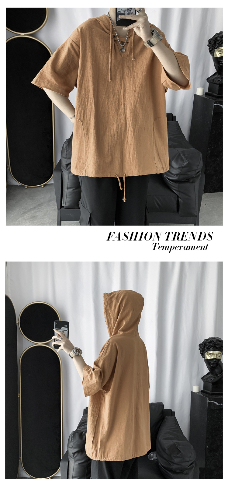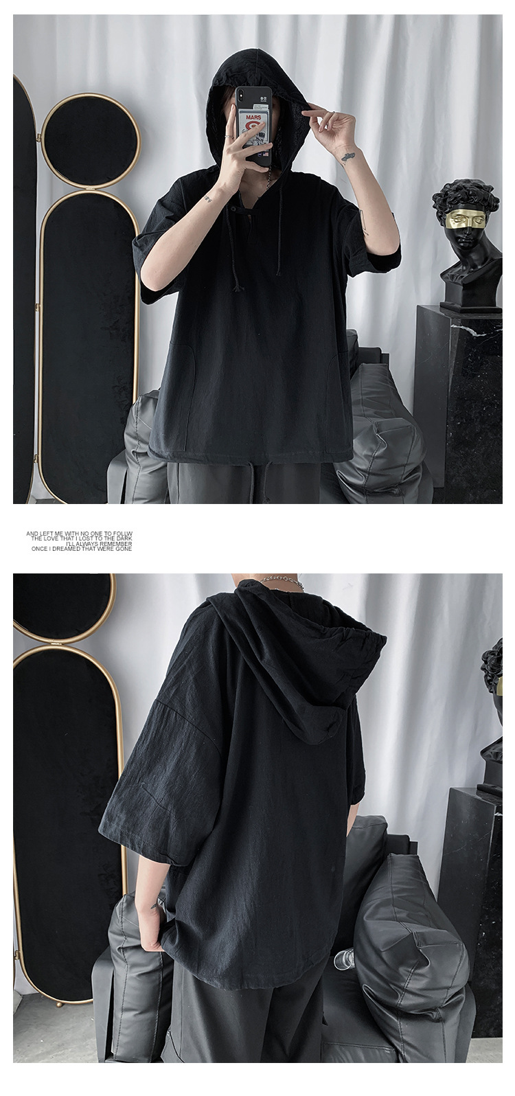ハイストリートスタイル ユニークなデザイン キャップ付き半袖シャツ