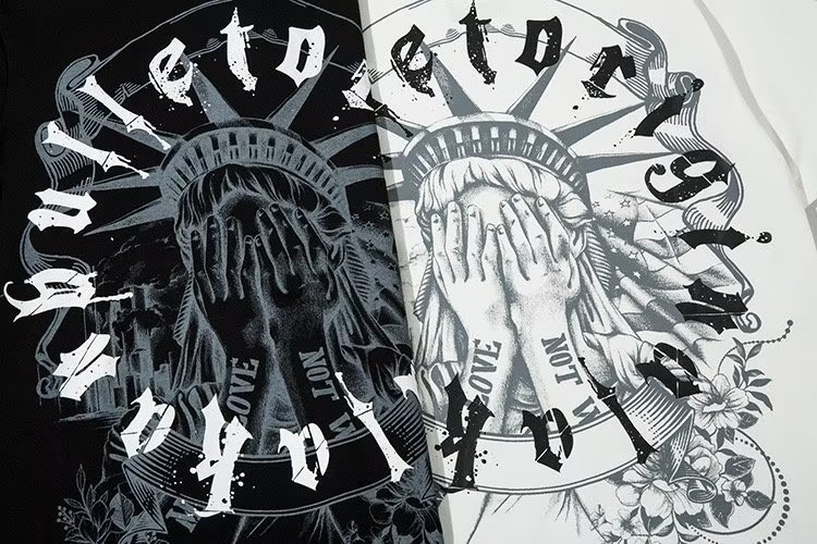ヒップホップダークスタイル 泣いている自由の女神像 半袖シャツ