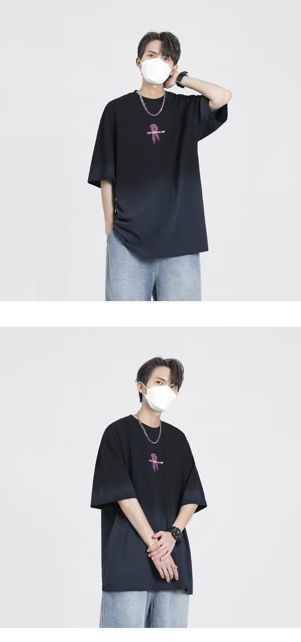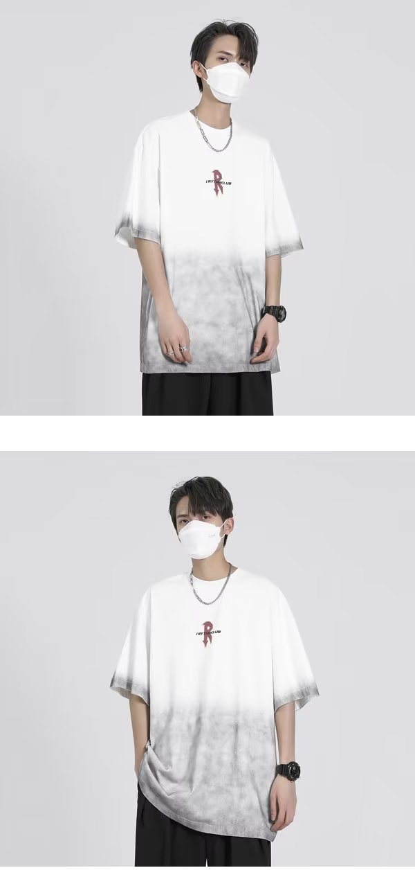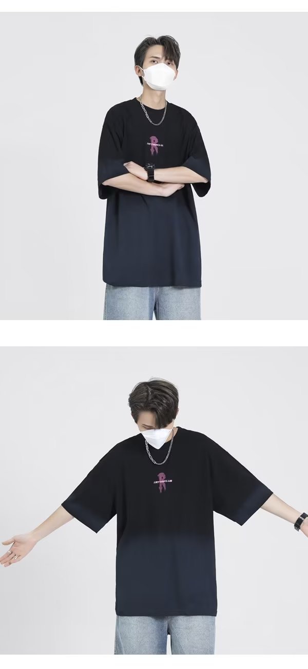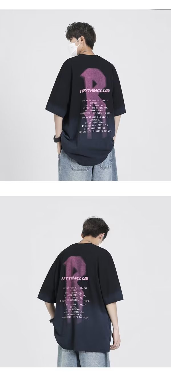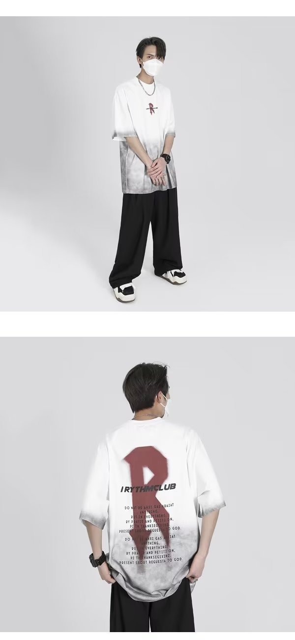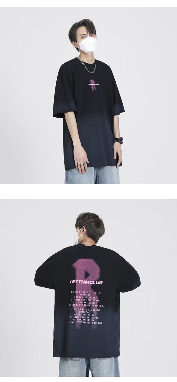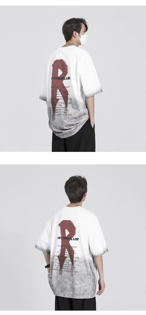 R 英語プリント グラデーション カジュアル 半袖シャツ